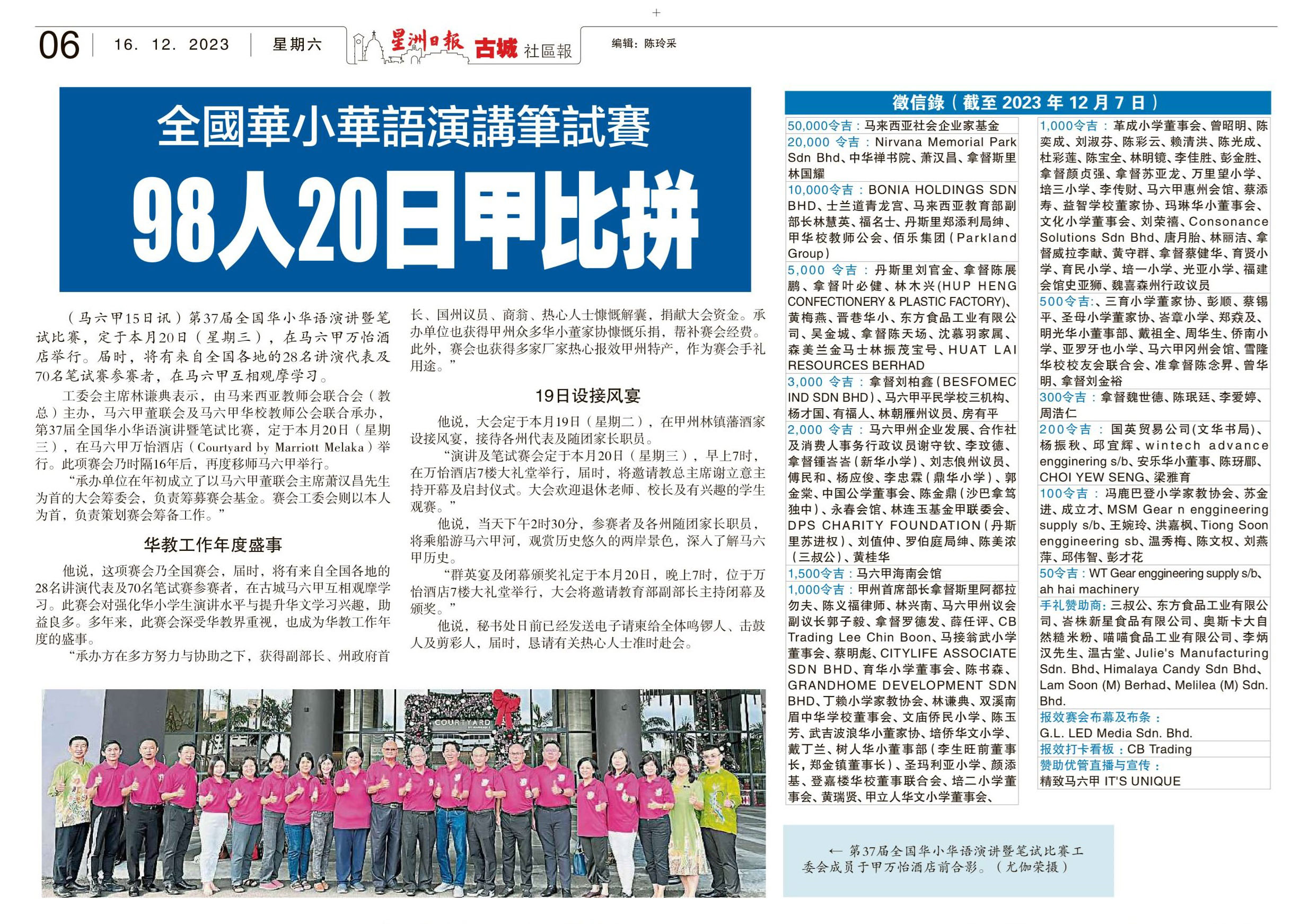 全国华小华语演讲笔试赛 98人20日马六甲比拼 WhatsApp 上一篇文章: 全国华小华语演讲暨笔试赛 98代表齐聚古城比高低 上一页 下一篇文章: 恭喜马来西亚小记者在2023年“Z世代华星小记者”全球PK赛获奖 下一页