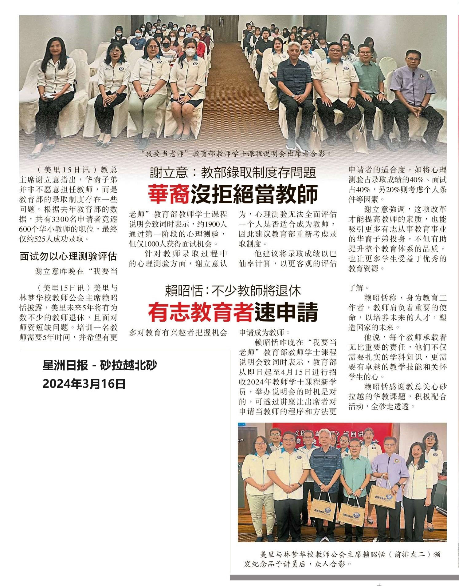 我要当老师砂拉越巡回说明会(美里)新闻剪报