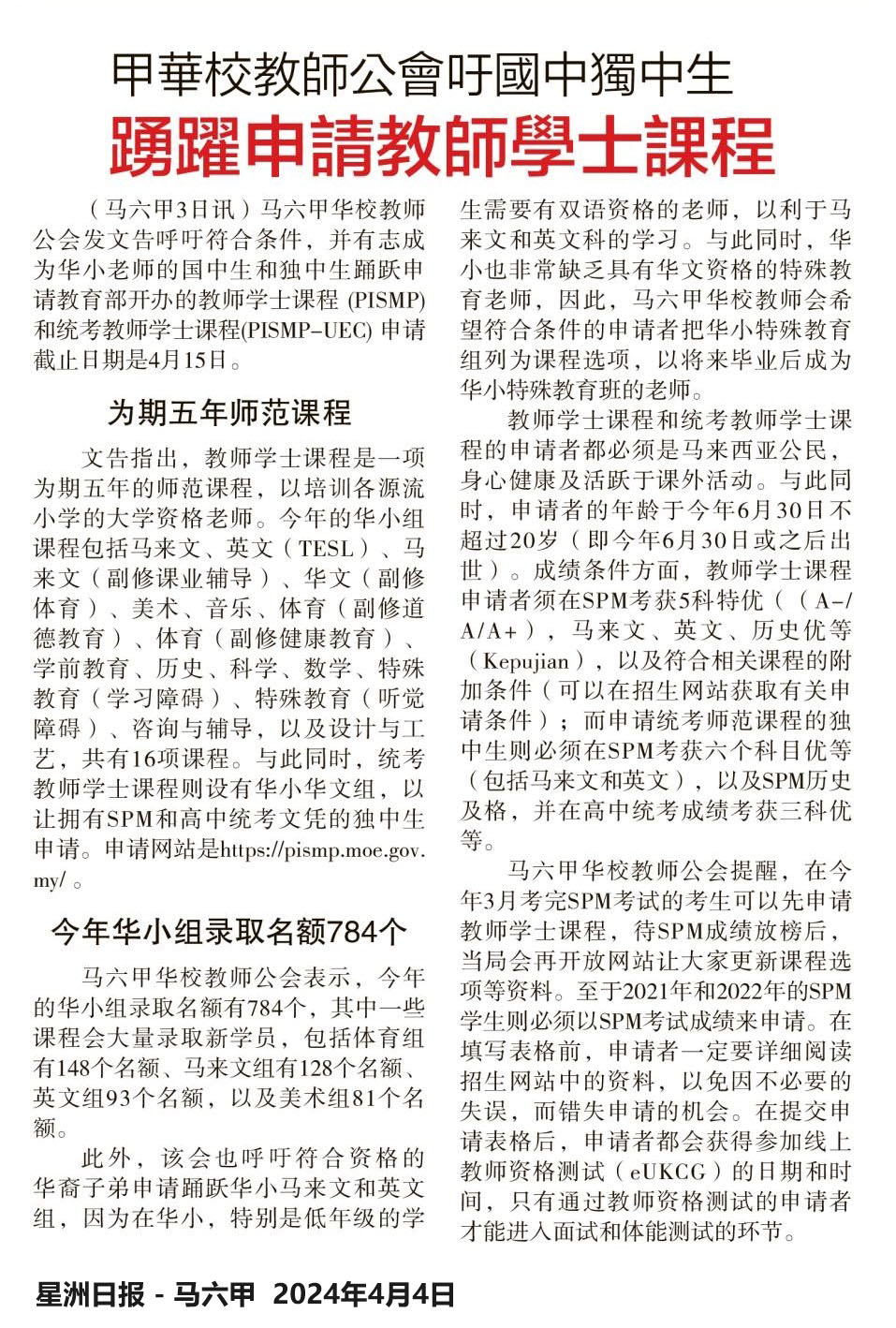 甲华校教师公会吁国中独中生 踊跃申请教师学士课程