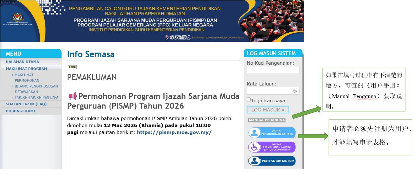 申请网站:https://pismp.moe.gov.my/