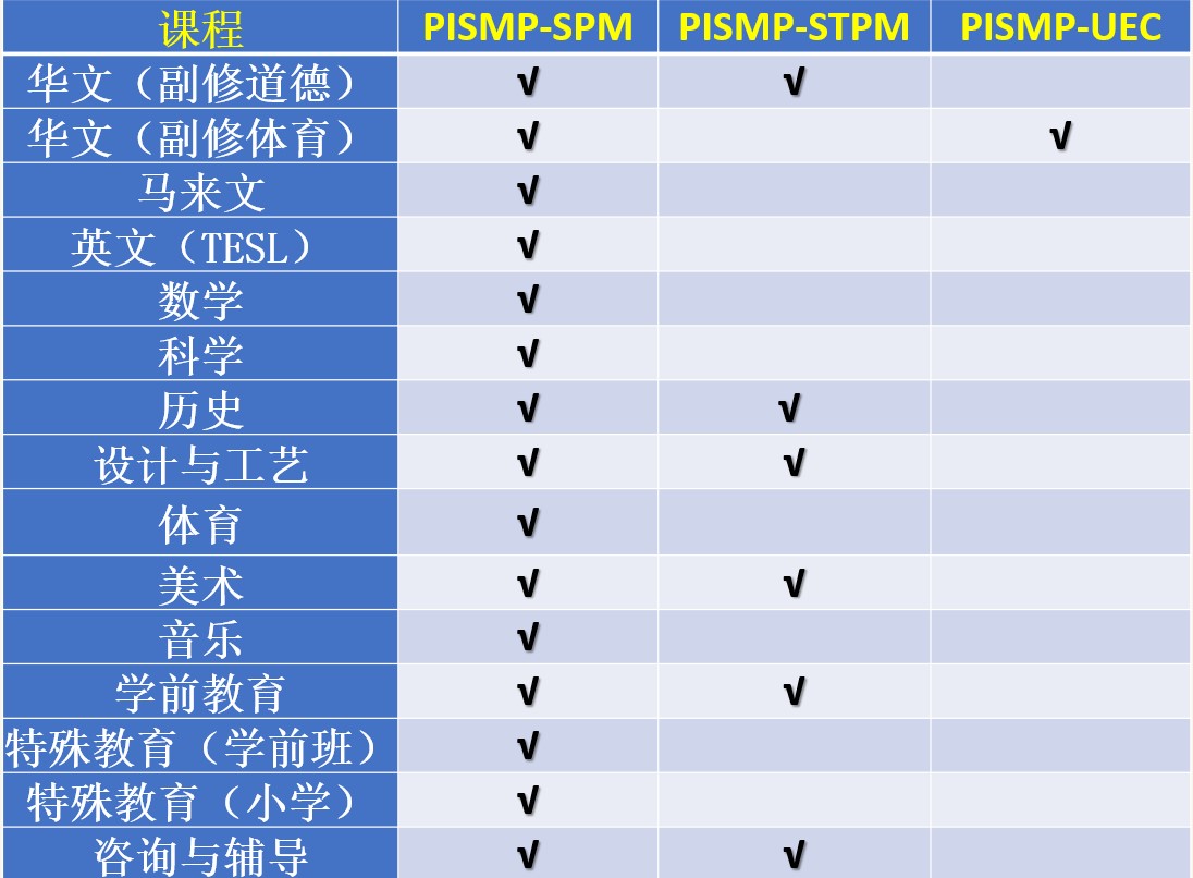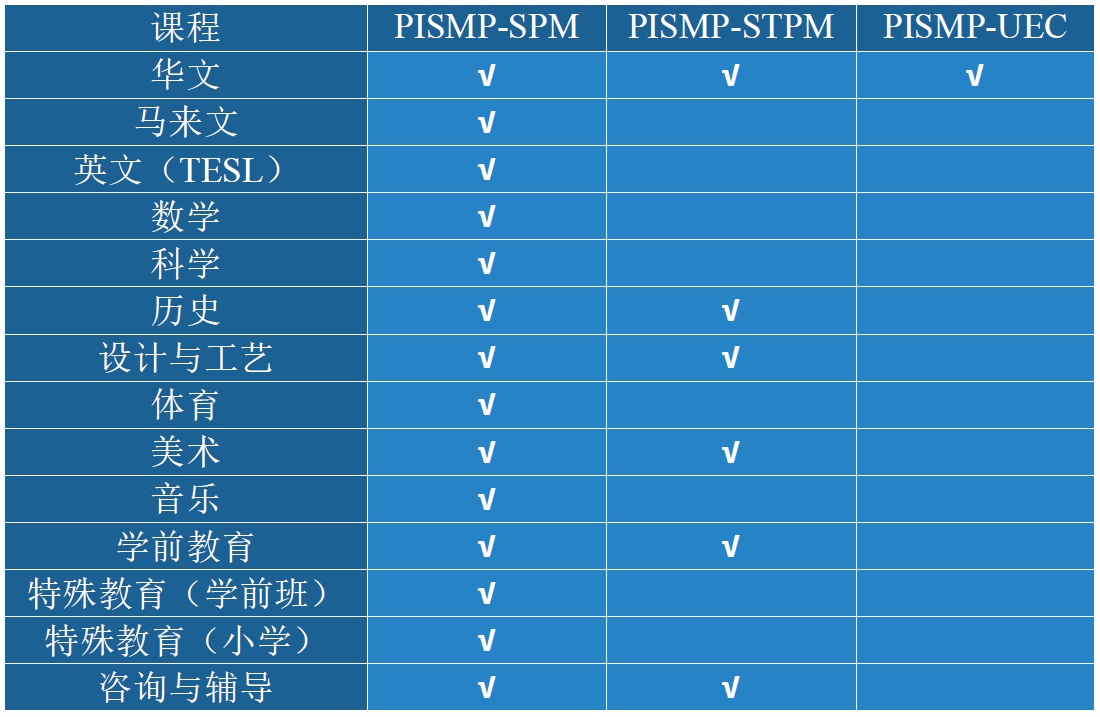 一年预科课程(PPISMP)及四年学士课程。 |
