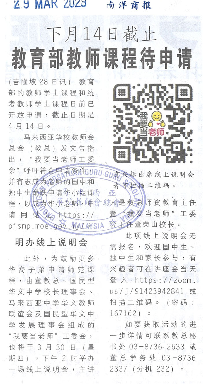 上一篇文章: 董教总主催 昔中举行 402教师学士课程说明会