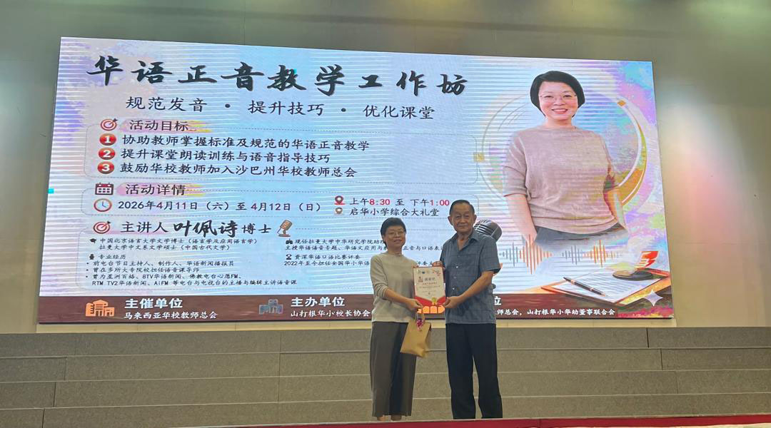 由教总主催、山打根华小校长协会主办,并获沙巴华校教师会总会及山打根华小华幼董事联合会赞助的“华语正音教学工作坊”,于2026年4月11日至12日,一连两天在山打根启华小学综合大礼堂顺利举行,圆满落幕。