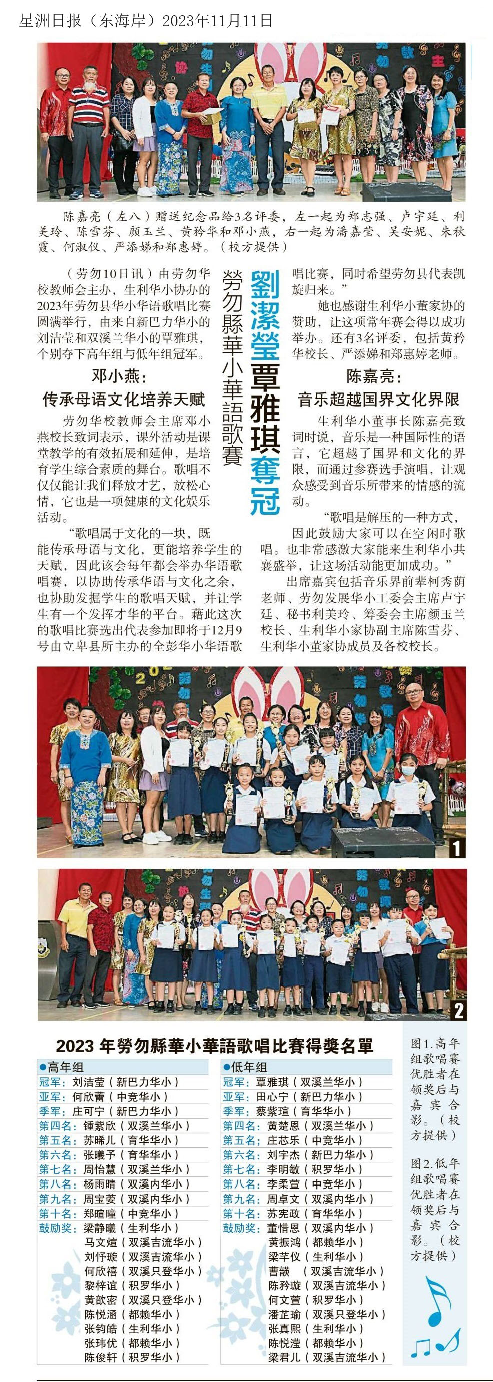 劳勿县华小华语歌唱赛 刘洁莹 辜雅琪夺冠