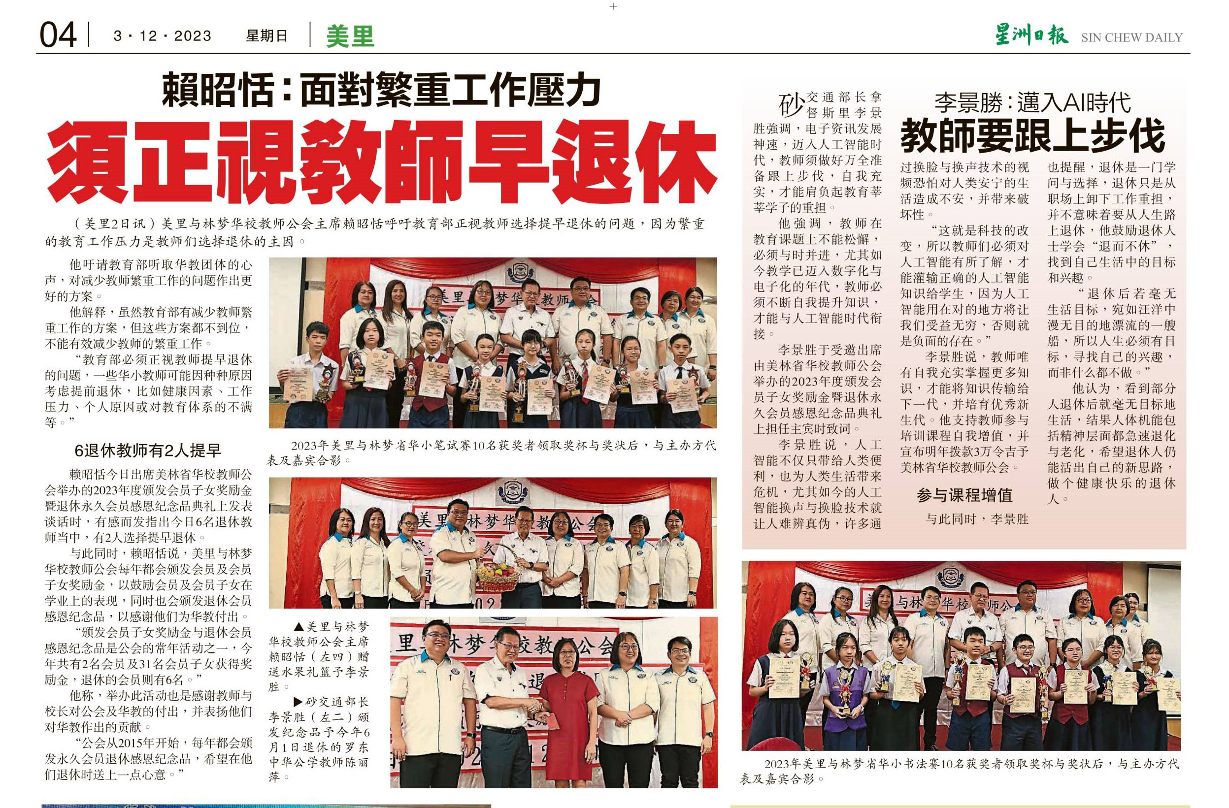 赖昭恬:面对繁重工作压力 须正视教师早退休