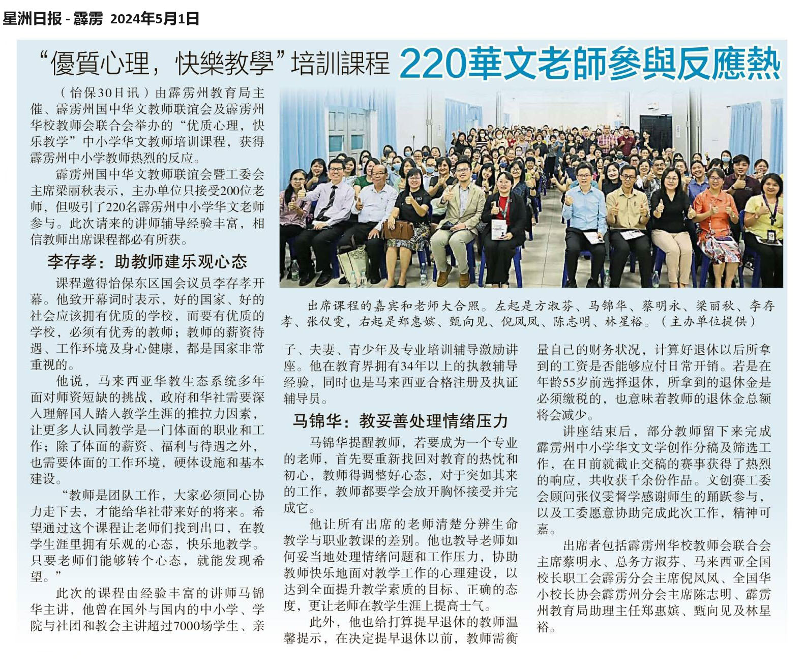 “优质心理,快乐教学”培训课程  220华文老师参与反应热