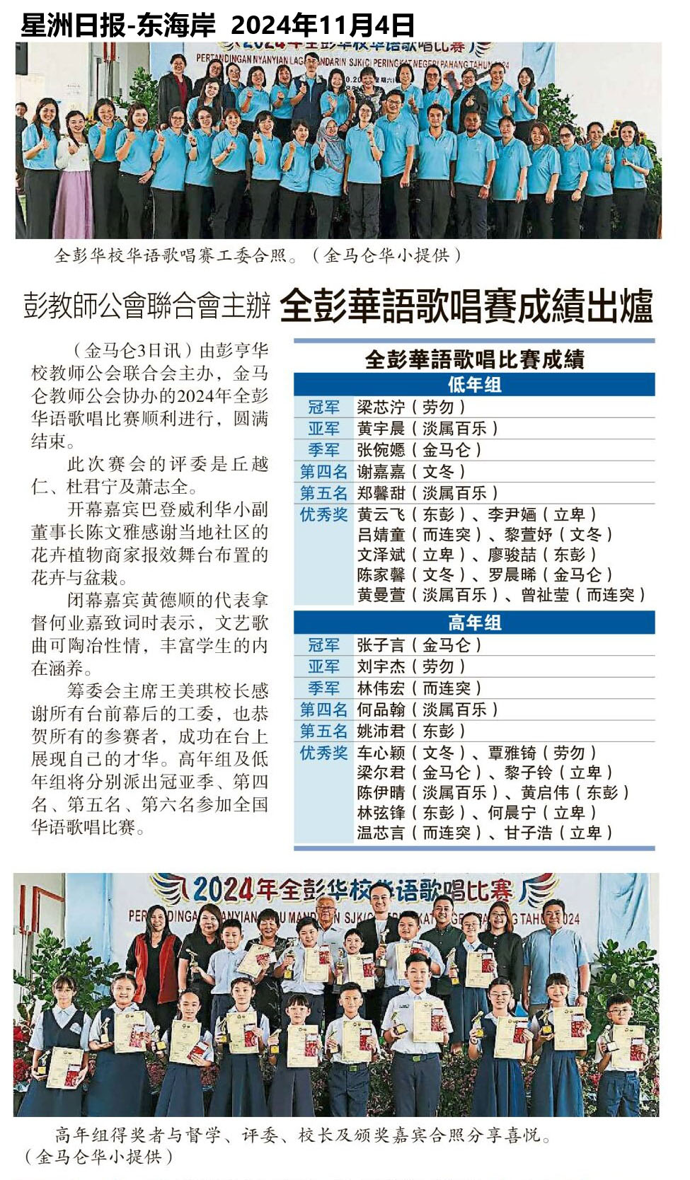 彭教联主办 全彭华语歌唱赛成绩出炉