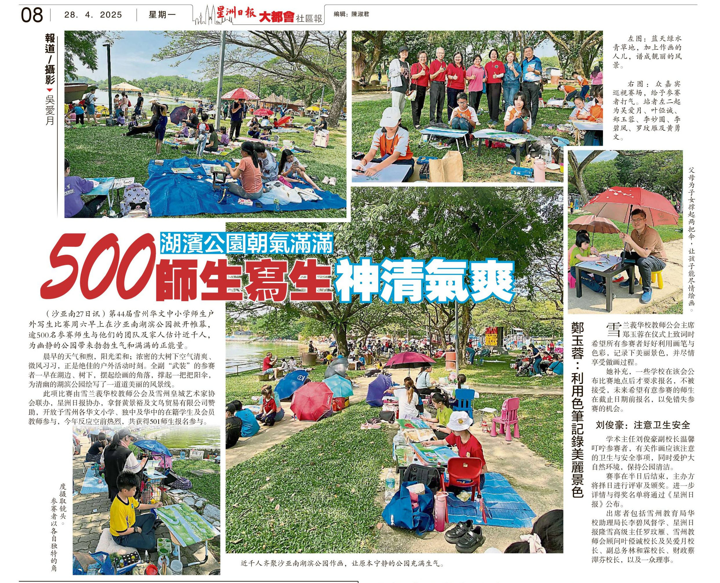 湖滨公园朝气满满 500师生写生神清气爽 WhatsApp 上一篇文章: 黄绍轩:学习成效低于国际水平 教育部须审视教育体制 上一页 下一篇文章: 柔南华校教师公会举办歌唱赛 南兴华小刘荐豪摘冠 下一页