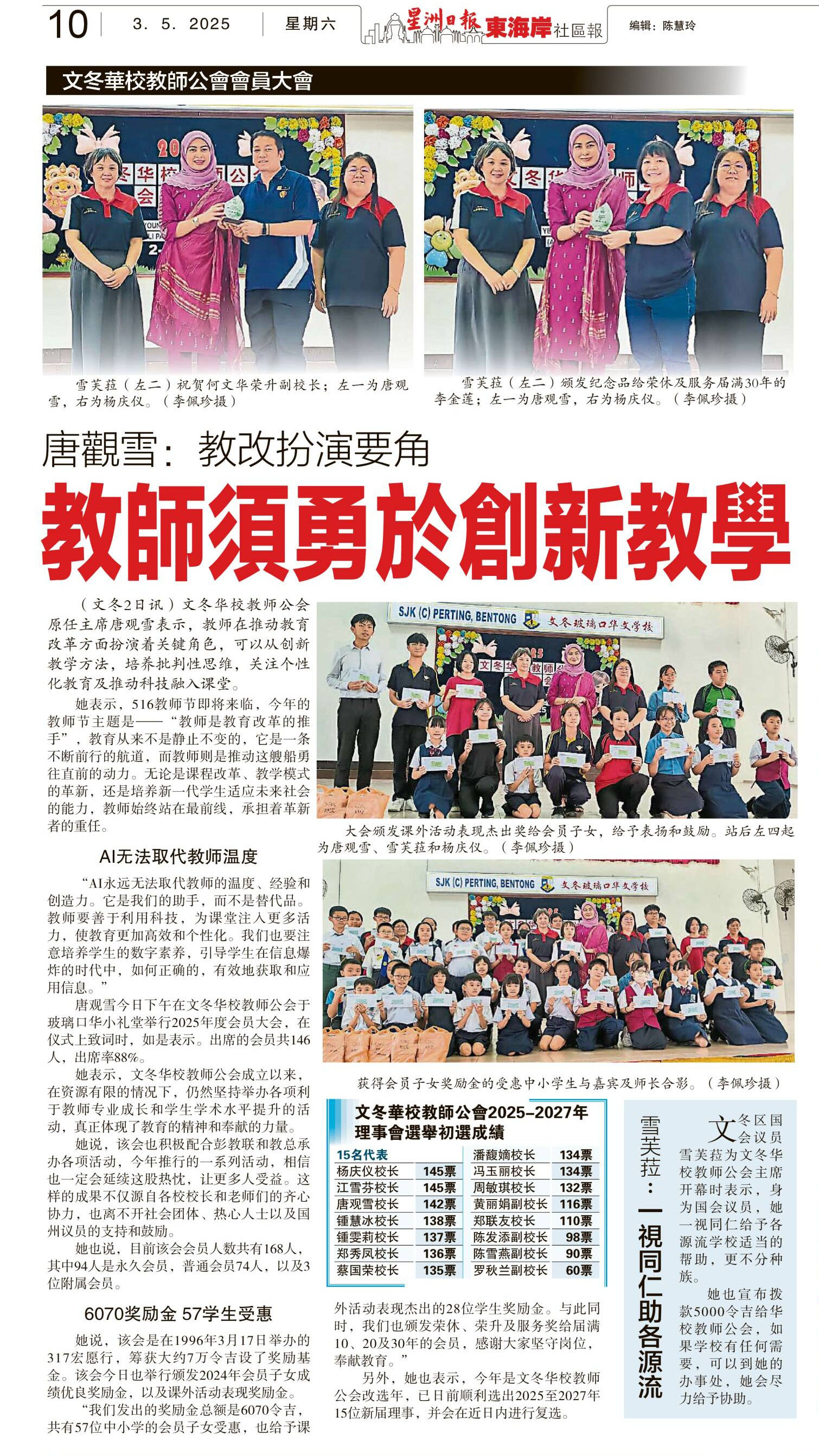 唐观雪:教改扮演要角 教师须勇于创新教学