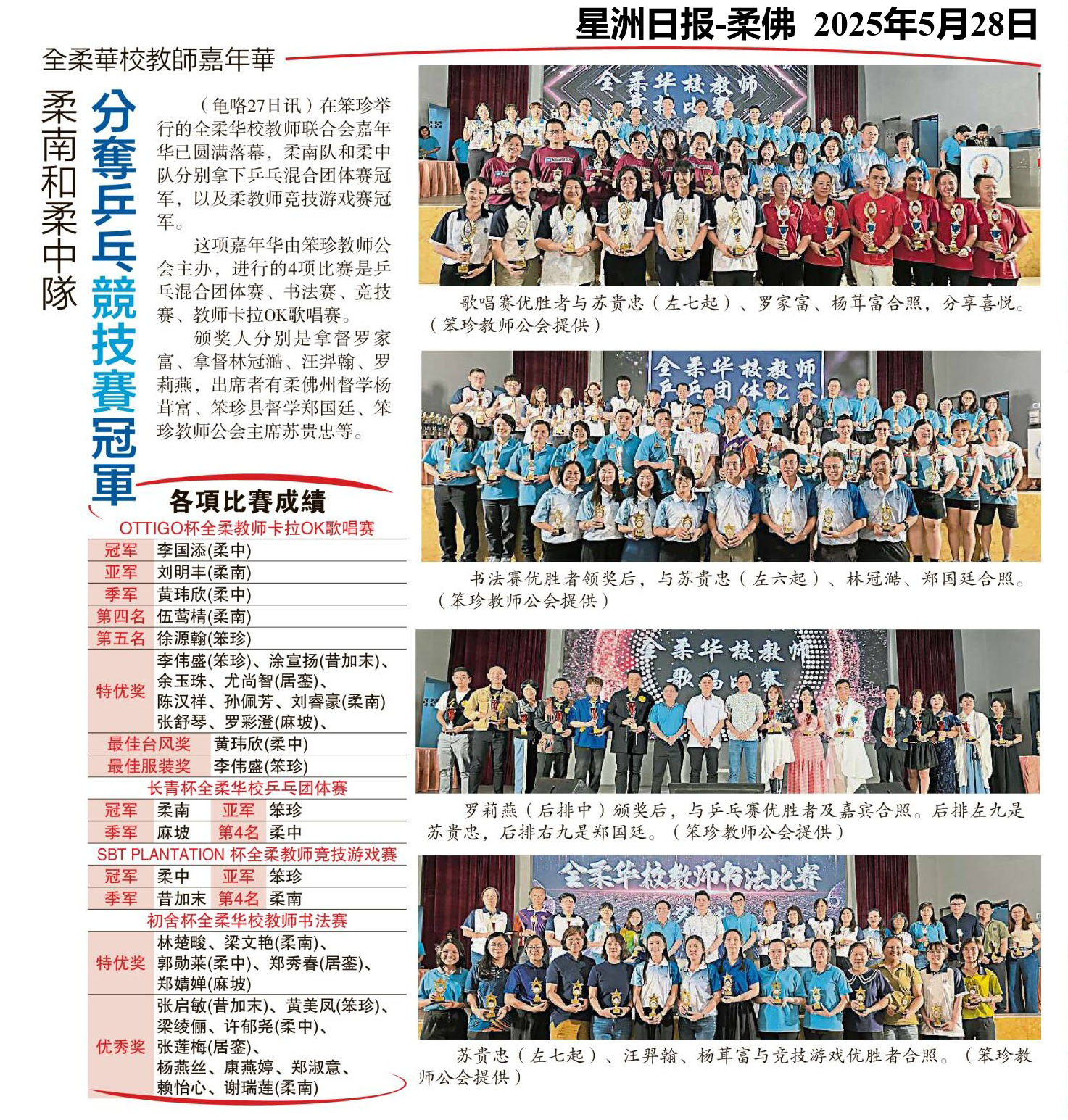 全柔华校教师嘉年华 柔南和柔中队分夺兵乓竞技赛冠军 WhatsApp 上一篇文章: 下霹雳华校教师会走过78年 推动华教发展历尽挑战 上一页 下一篇文章: 夏正恒:不仅教学 教师肩负传承语言使命 下一页