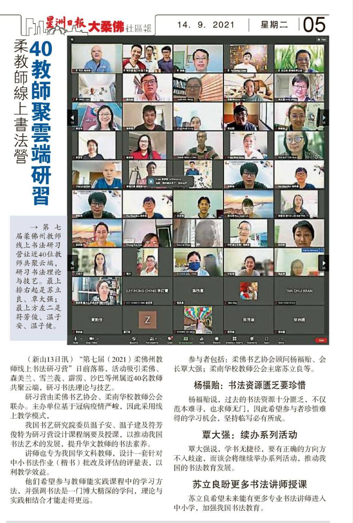 柔教师线上书法营 40教师聚云端研习