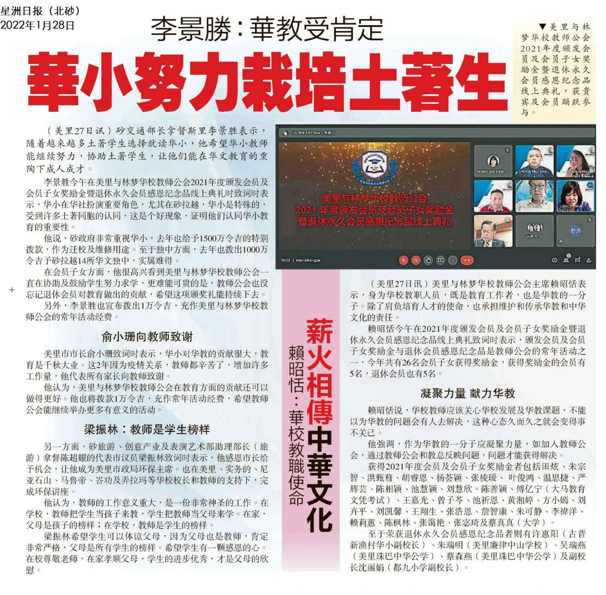 李景胜:华教受肯定 华小努力栽培土著生