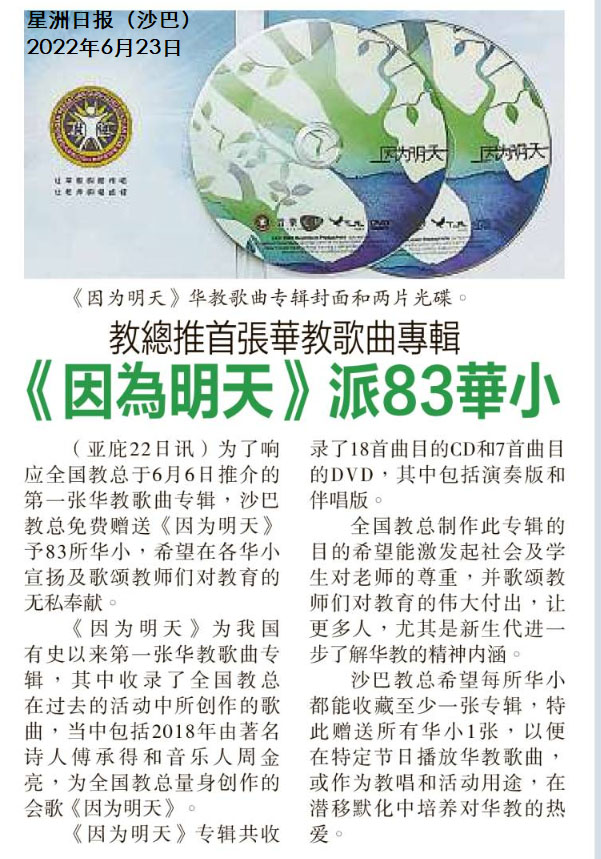 教总推首张华教歌曲专辑 《因为明天》派83华小