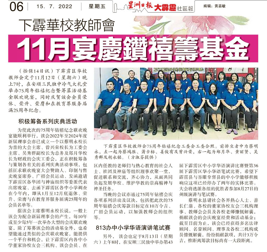 下霹雳华校教师会 11月宴庆钻禧筹基金