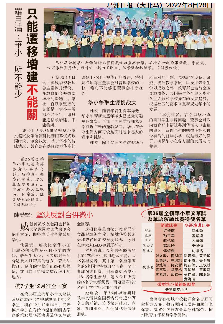 罗月清:华小一所不能少 只能迁移增建不能关 WhatsApp 上一篇文章: 霹雳中小学华语演讲赛 陈祉欣 姚芯怡 张沅蕾分夺冠 上一页 下一篇文章: 霹中小学华语演讲 27日决赛 万里望万华二校举行 下一页