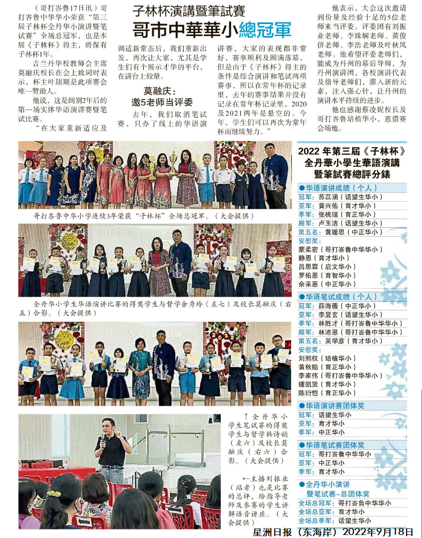 子林杯演讲暨笔试比赛 哥市中华华小总冠军