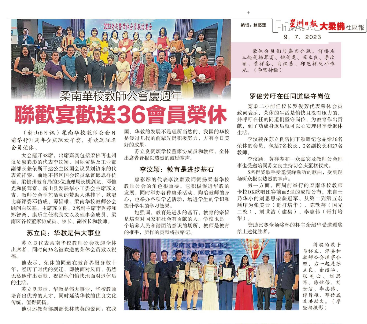 柔南华校教师公会庆周年 联欢宴欢送36会员荣休