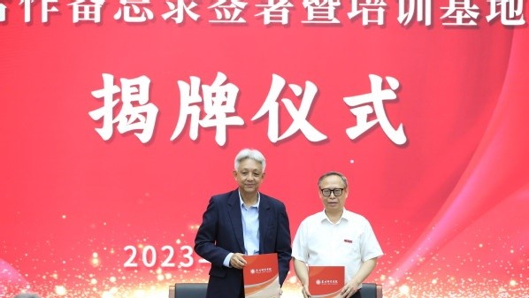 屈广清和谢立意分别代表双方签署合作备忘录。随后,举行泉州师范学院马来西亚华校教师会总会培训基地揭牌仪式。