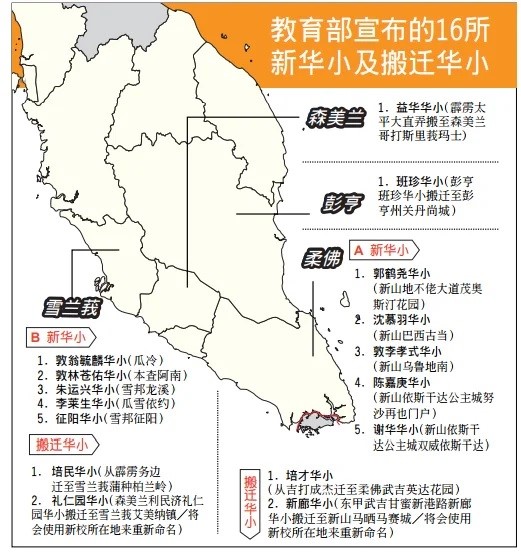 另外2所华小则是在州内进行搬迁,即彭亨关丹班珍华小和柔佛武吉甘蜜新廊华小。