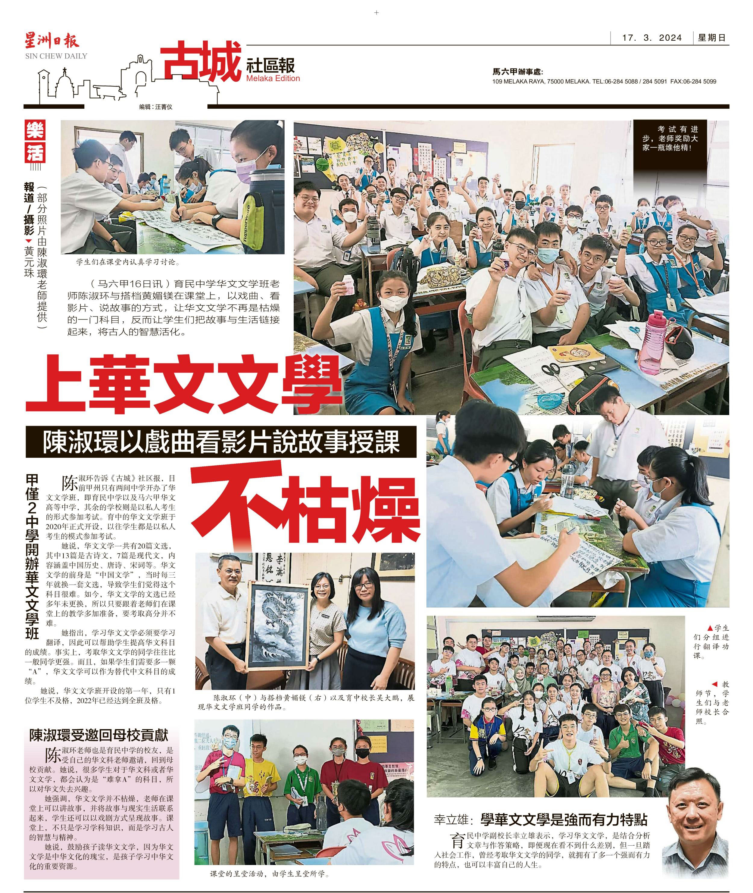 陈淑环以戏曲看影片说故事授课 上华文文学不枯燥