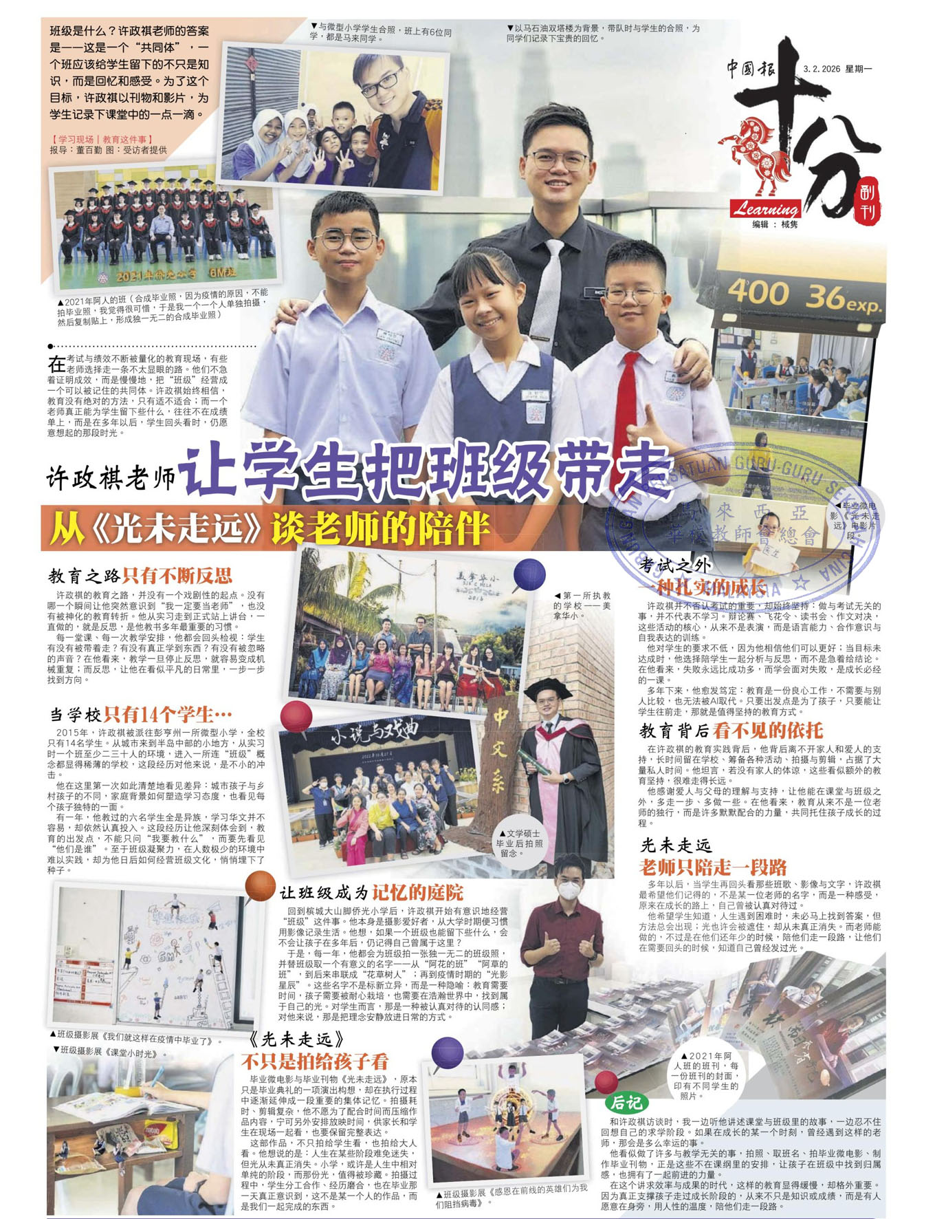 许政祺老师 让学生把班级带走 从《光未走远》谈老师的陪伴 WhatsApp 上一篇文章: 3组织:疫情拖缓学习能力 须强化教师改善学生读写算 上一页 下一篇文章: 王仕勇老师——拍片也教书 记录小岛学校故事 下一页