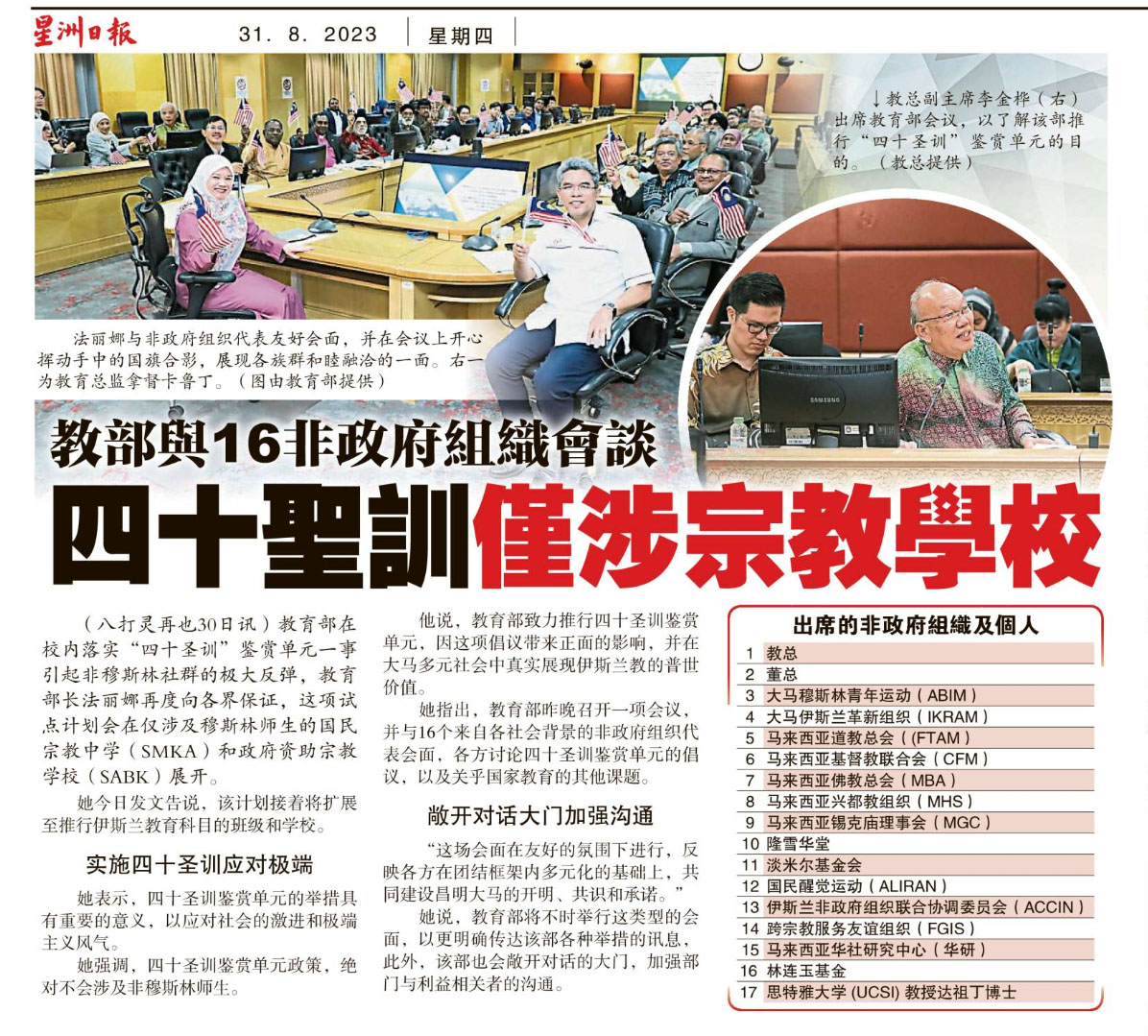 教育部与16非政府组织会谈 四十圣训仅涉宗教学校