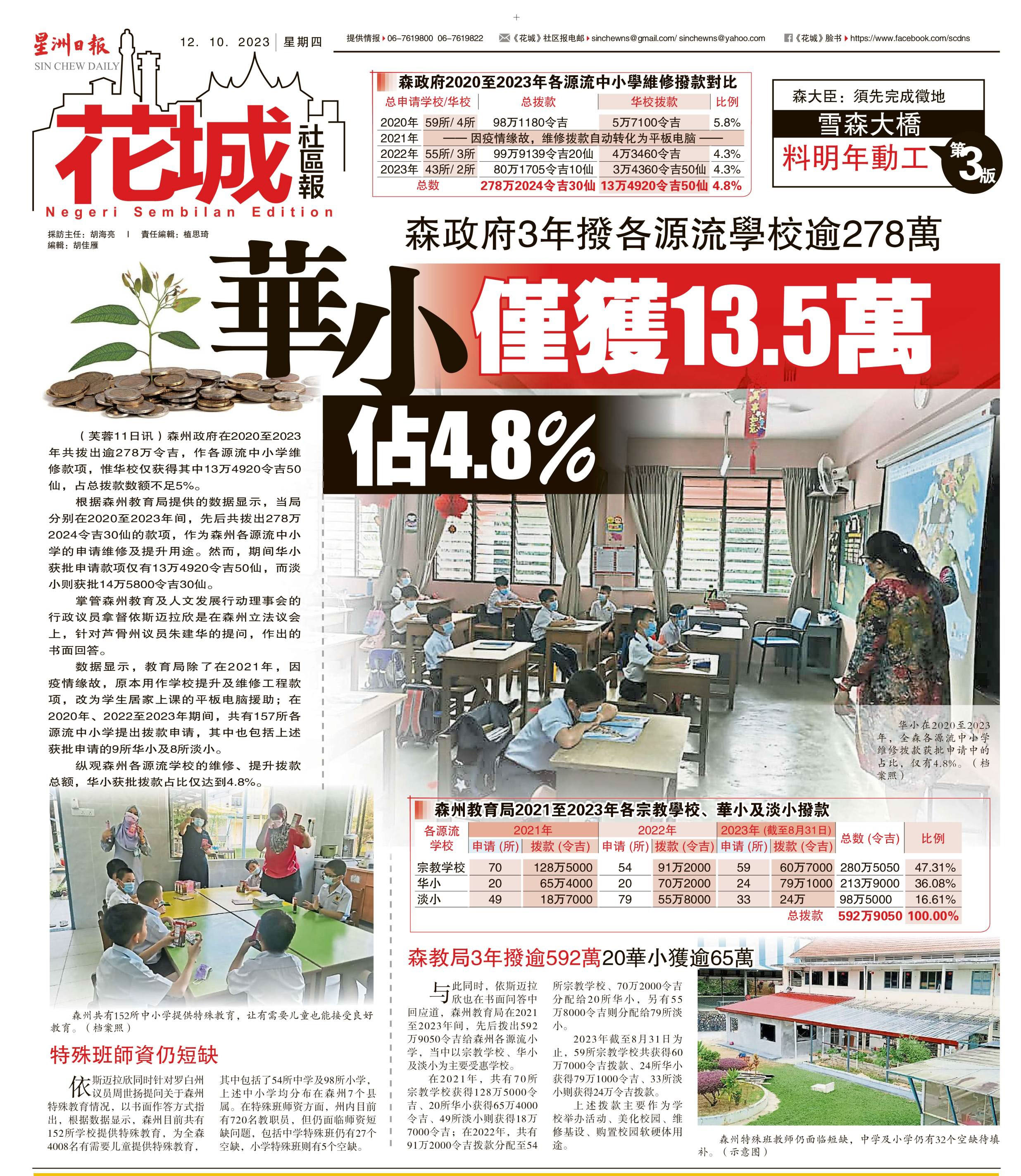 森政府3年拨各源流学校逾278万 华小仅获13.5万 占4.8% WhatsApp 上一篇文章: 高教部列“具竞争力学府” 南院将申请升格大学 上一页 下一篇文章: 林慧英:呈下降趋势 辍学原因包括结婚 下一页