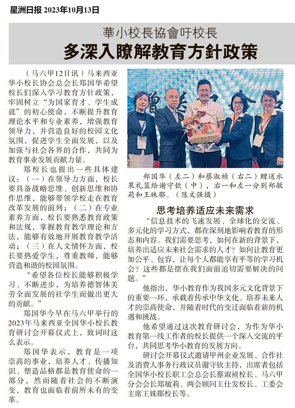 华小校长协会吁校长 多深入了解教育方针政策 WhatsApp 上一篇文章: 蔡淑祯:顺应数字化教育时代 应津贴教师上网费 上一页 下一篇文章: 全国首所获“生态文明小学”认证 协和华小绿火小战士护环境 下一页