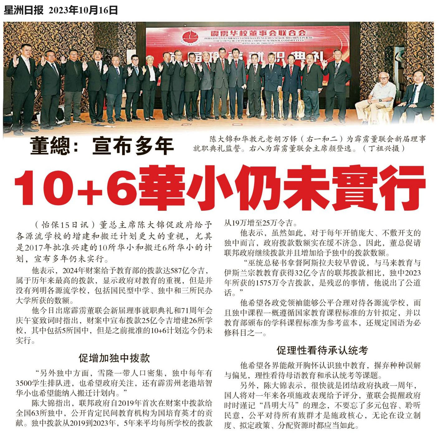 董总:宣布多年 10+6华小仍未实行