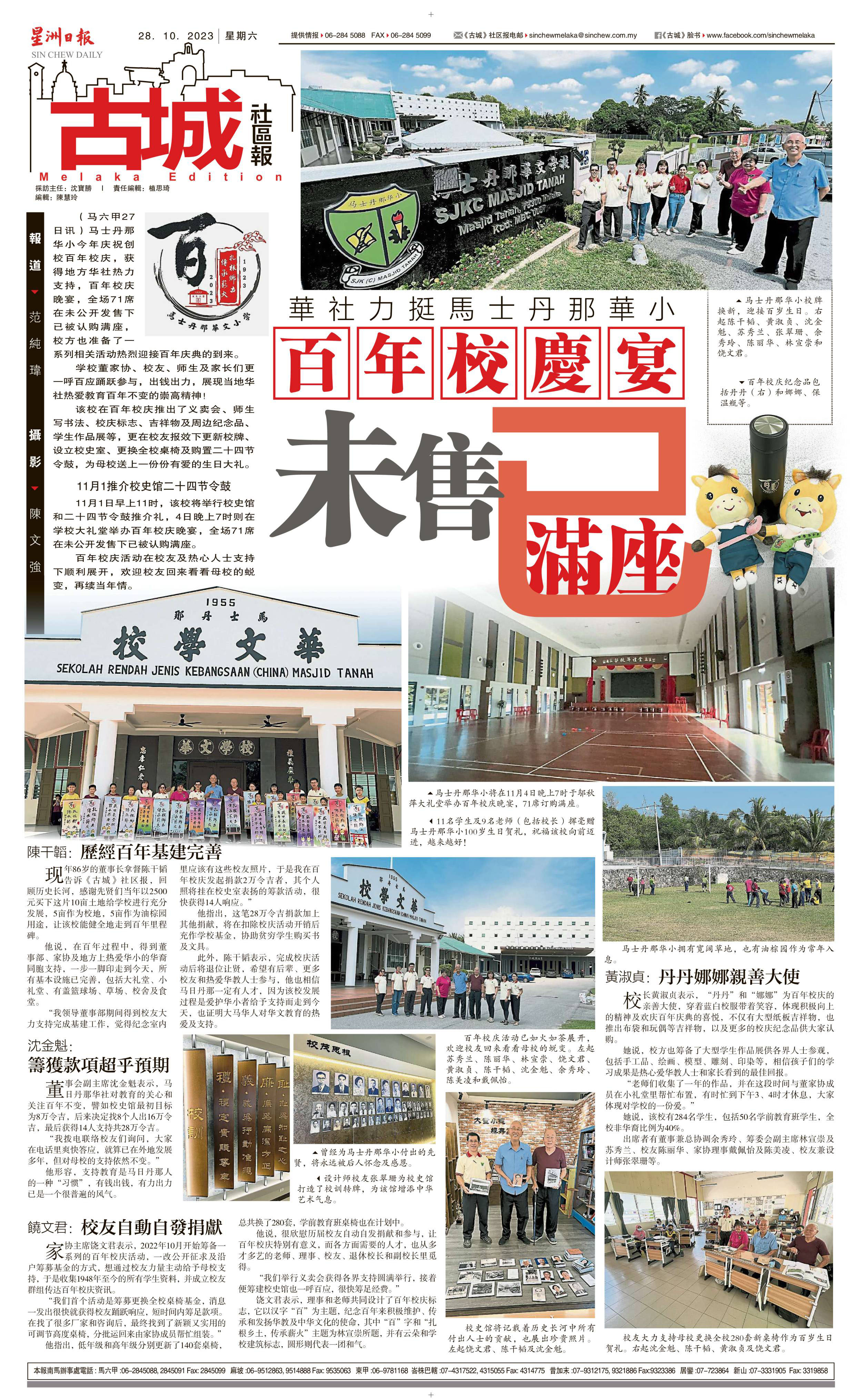 华社力挺马士丹那华小 百年校庆宴 未售已满座