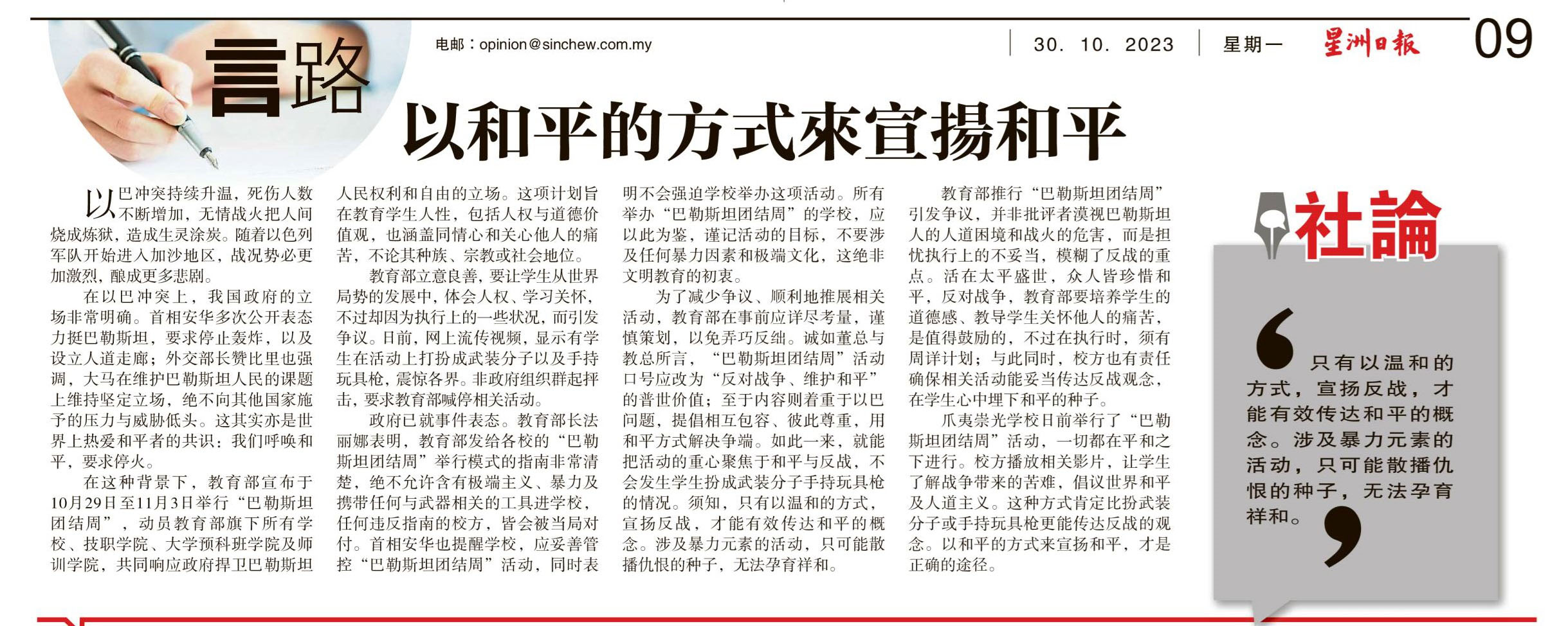 教育部指示学校举行“巴勒斯坦团结周”新闻剪报