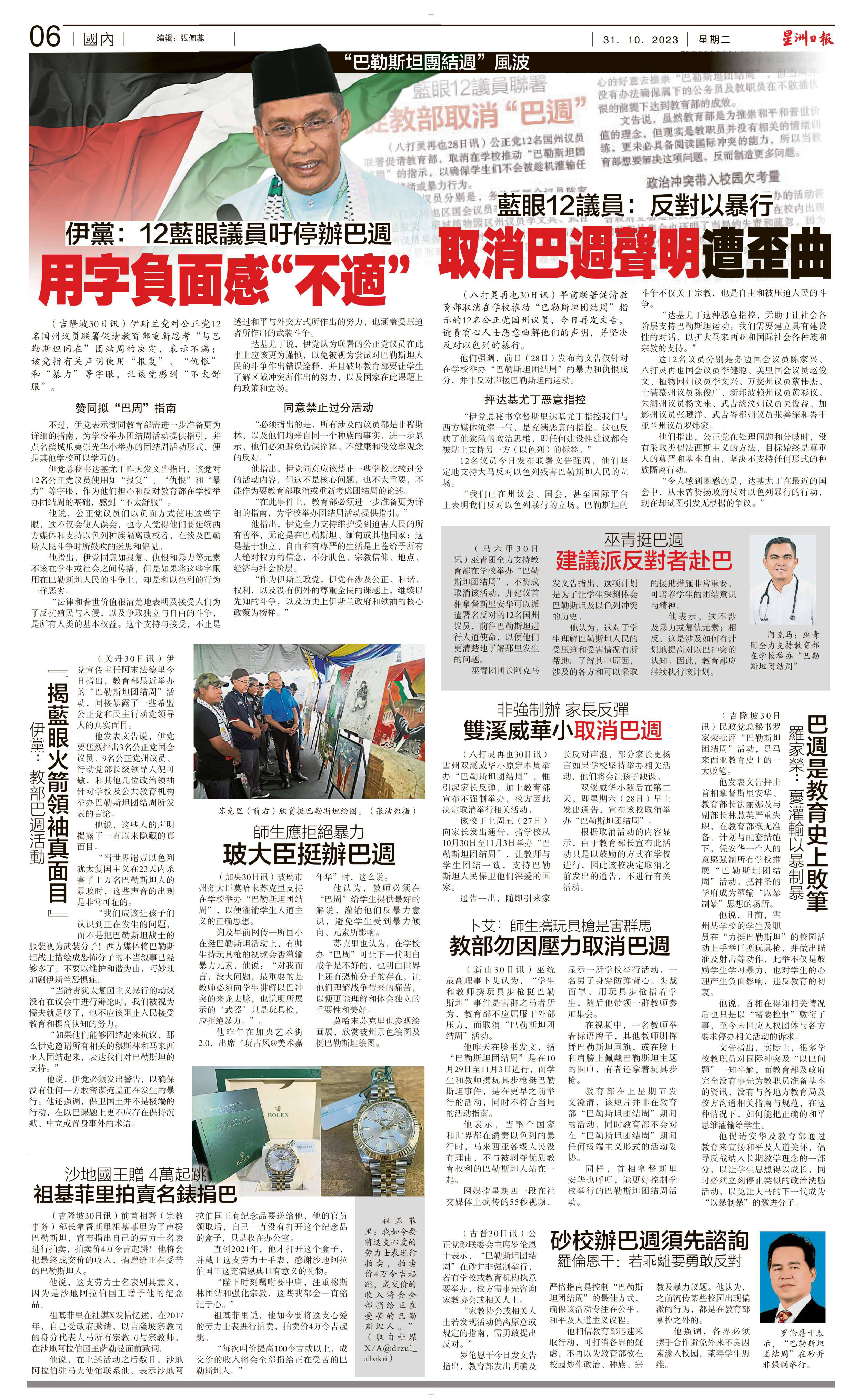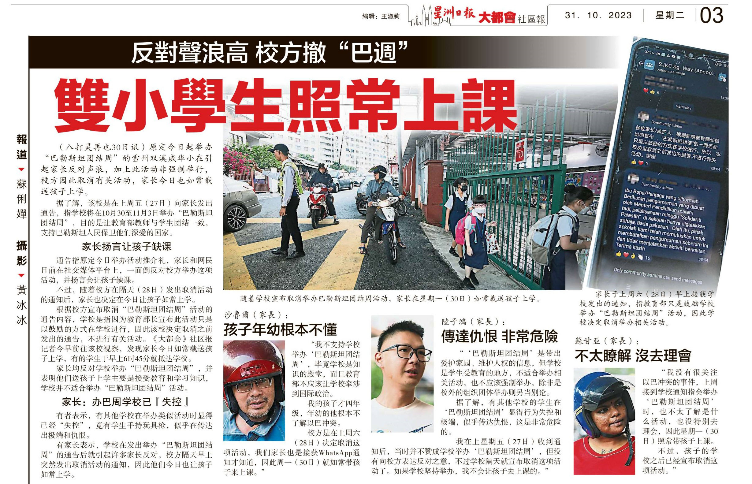 教育部指示学校举行“巴勒斯坦团结周”新闻剪报