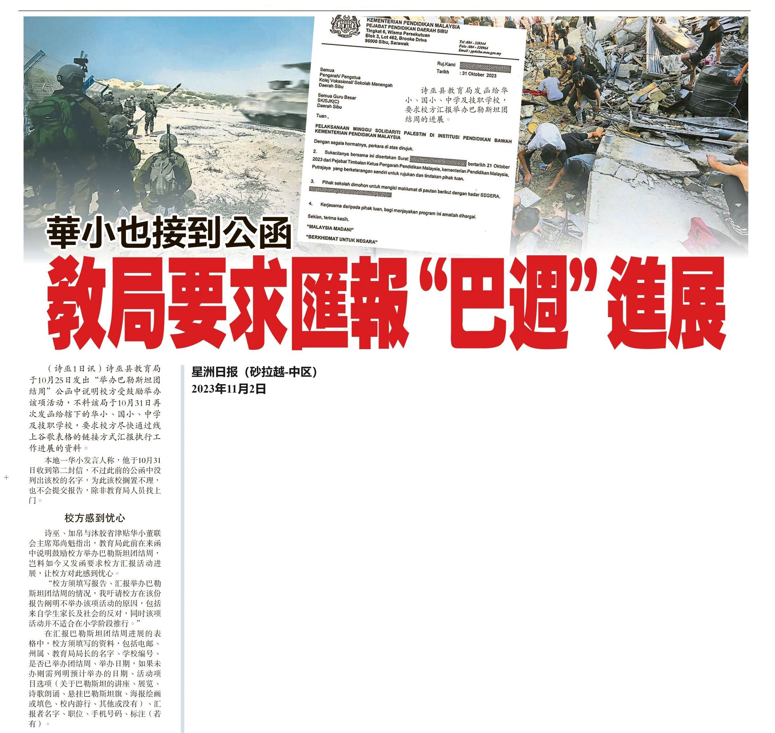 教育部指示学校举行“巴勒斯坦团结周”新闻剪报