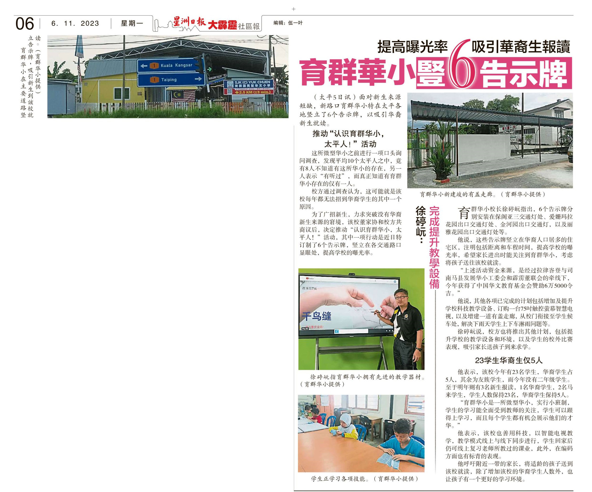 提高曝光率 吸引华裔生报读 育群华小竖6告示牌