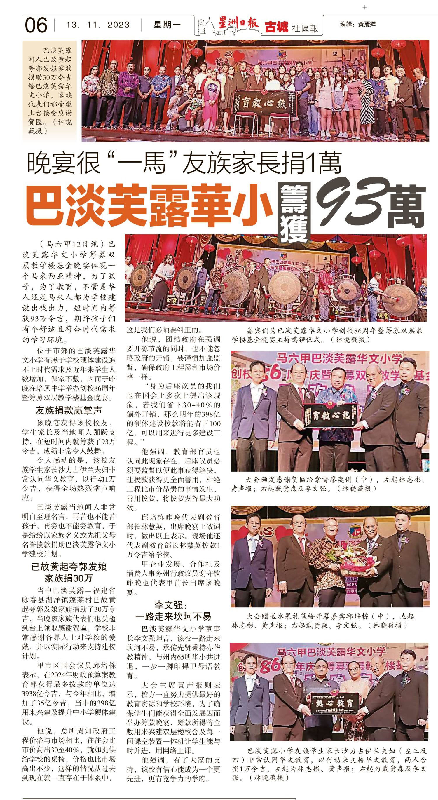 晚宴很“一马”友族家长捐1万 巴淡芙露华小筹获93万 WhatsApp 上一篇文章: 船头育华小学 百年校庆暨筹建设基金联欢宴 筹逾82万 上一页 下一篇文章: 董事长:政府维修拨款大减 兴中被迫用基金应急 下一页
