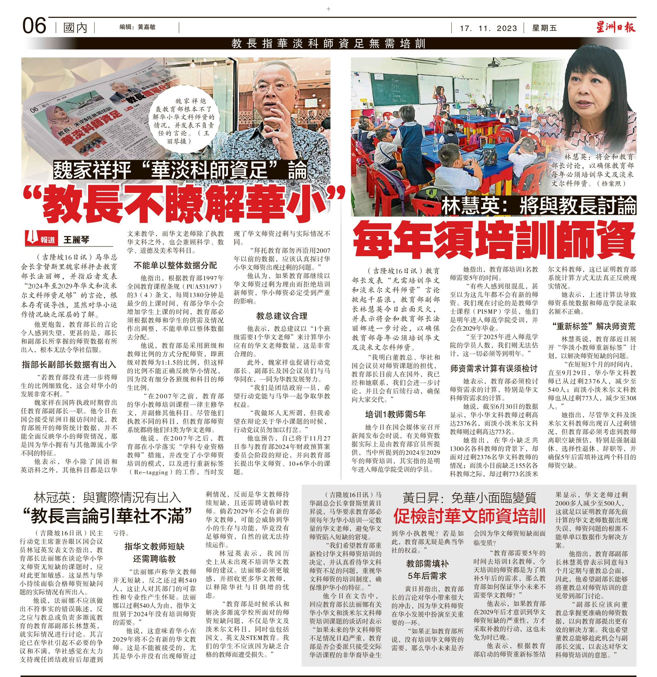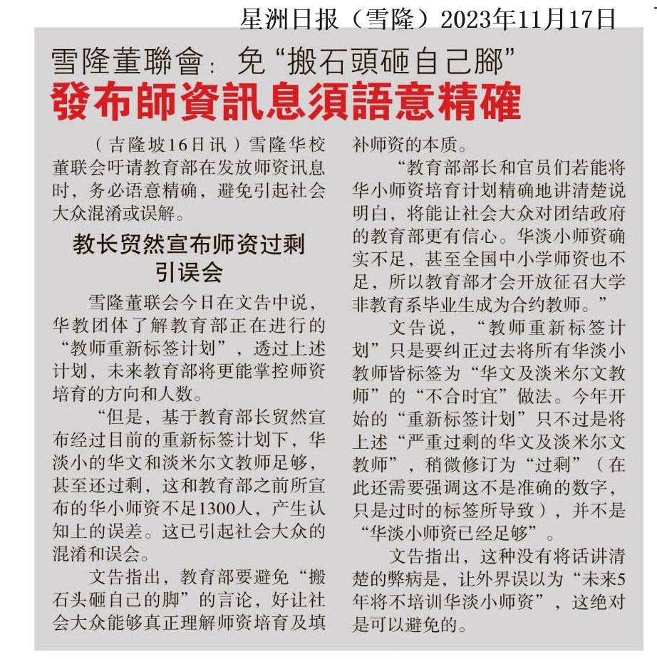 教育部长指华淡科师资足无需培训新闻剪报