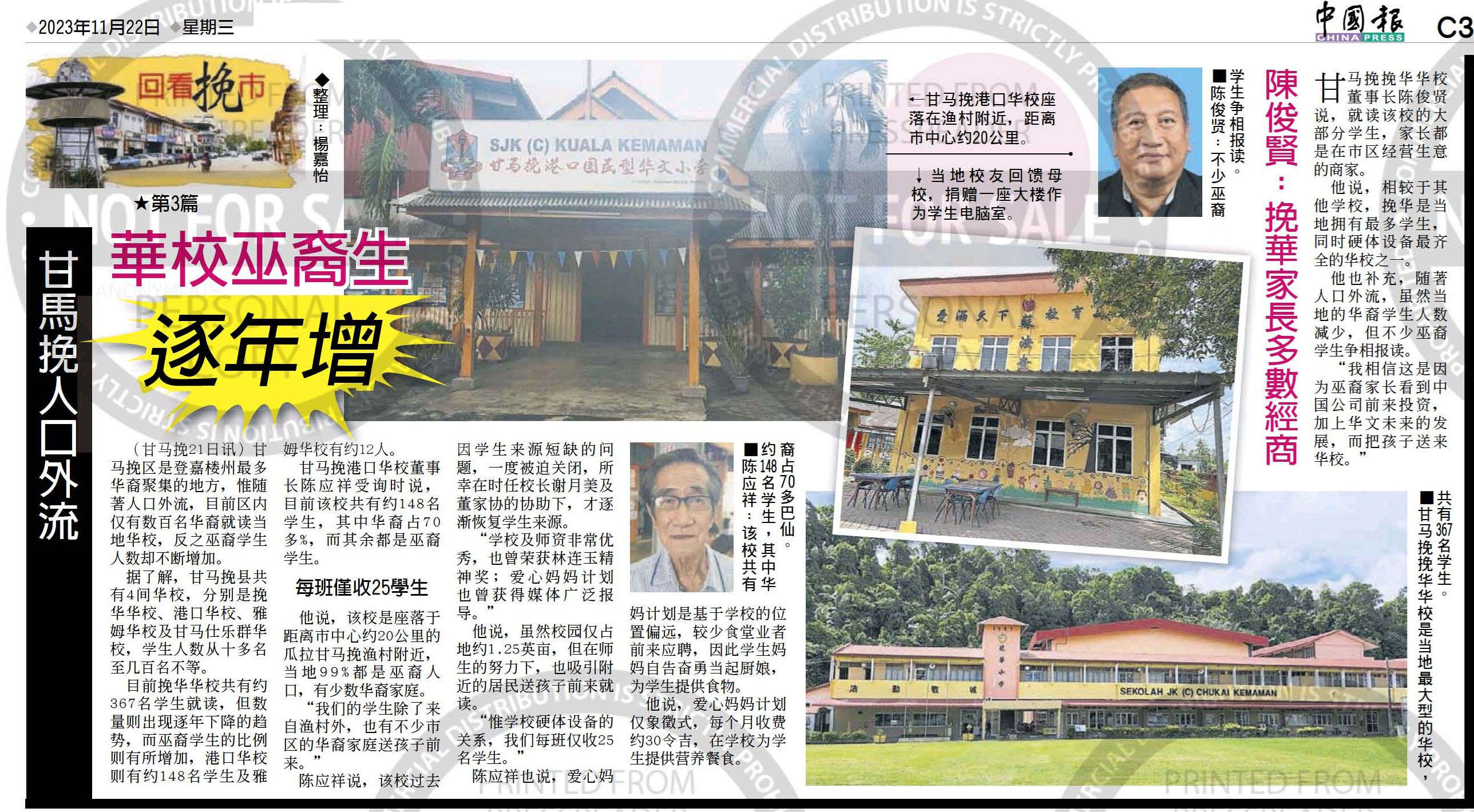 甘马挽人口外流 华校巫裔生逐年增