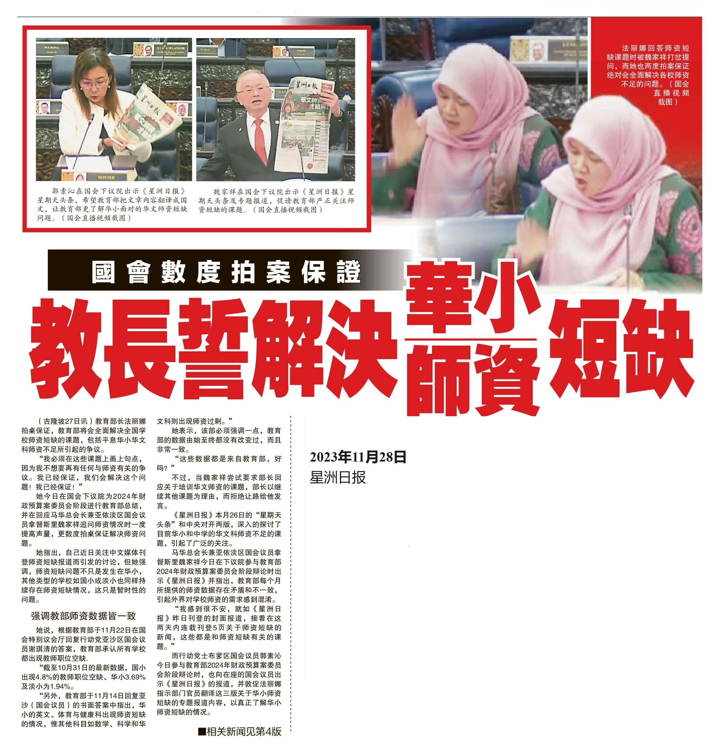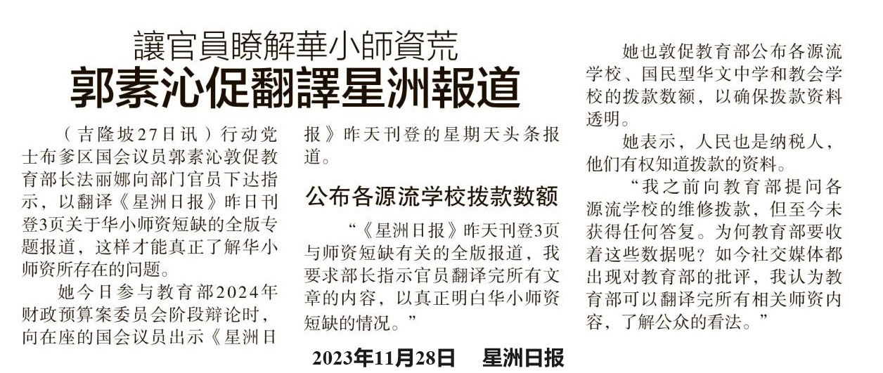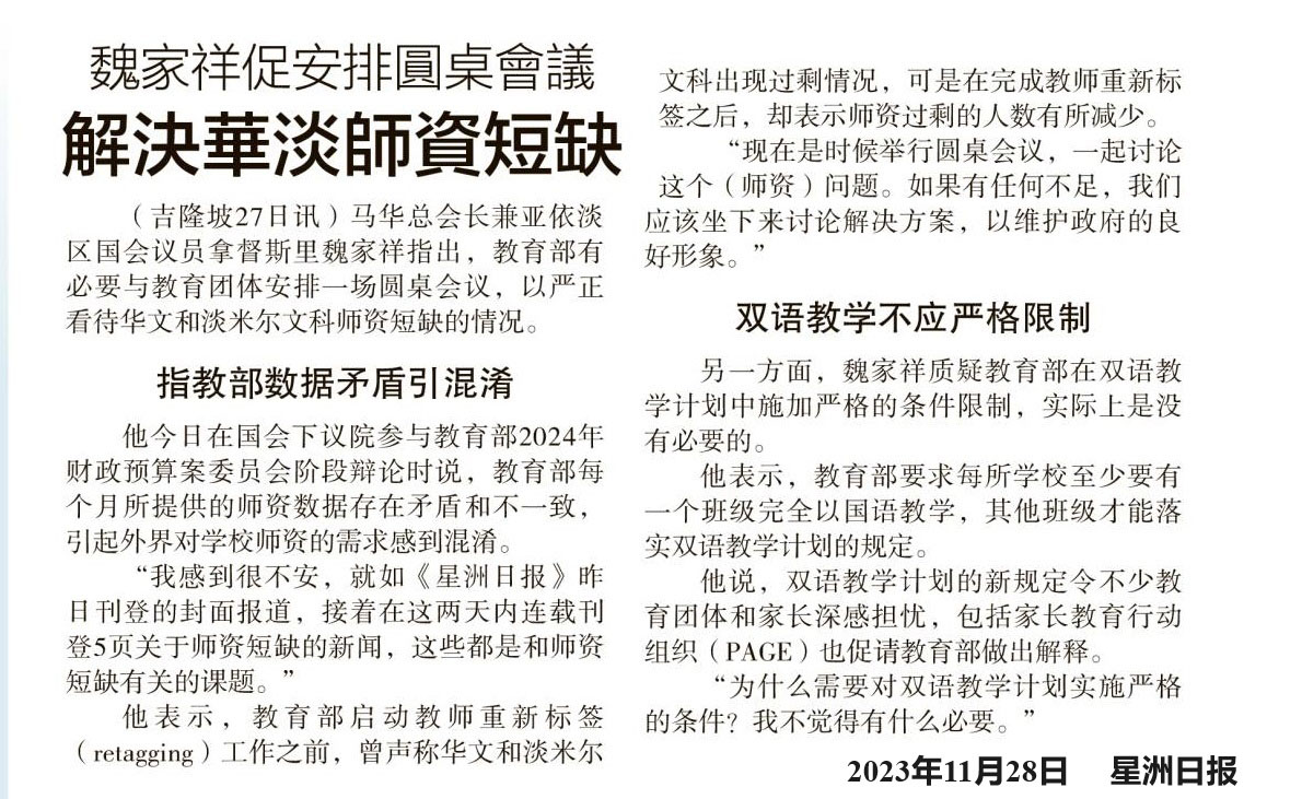 国会数度拍案保证 教育部长誓解决华小师资短缺