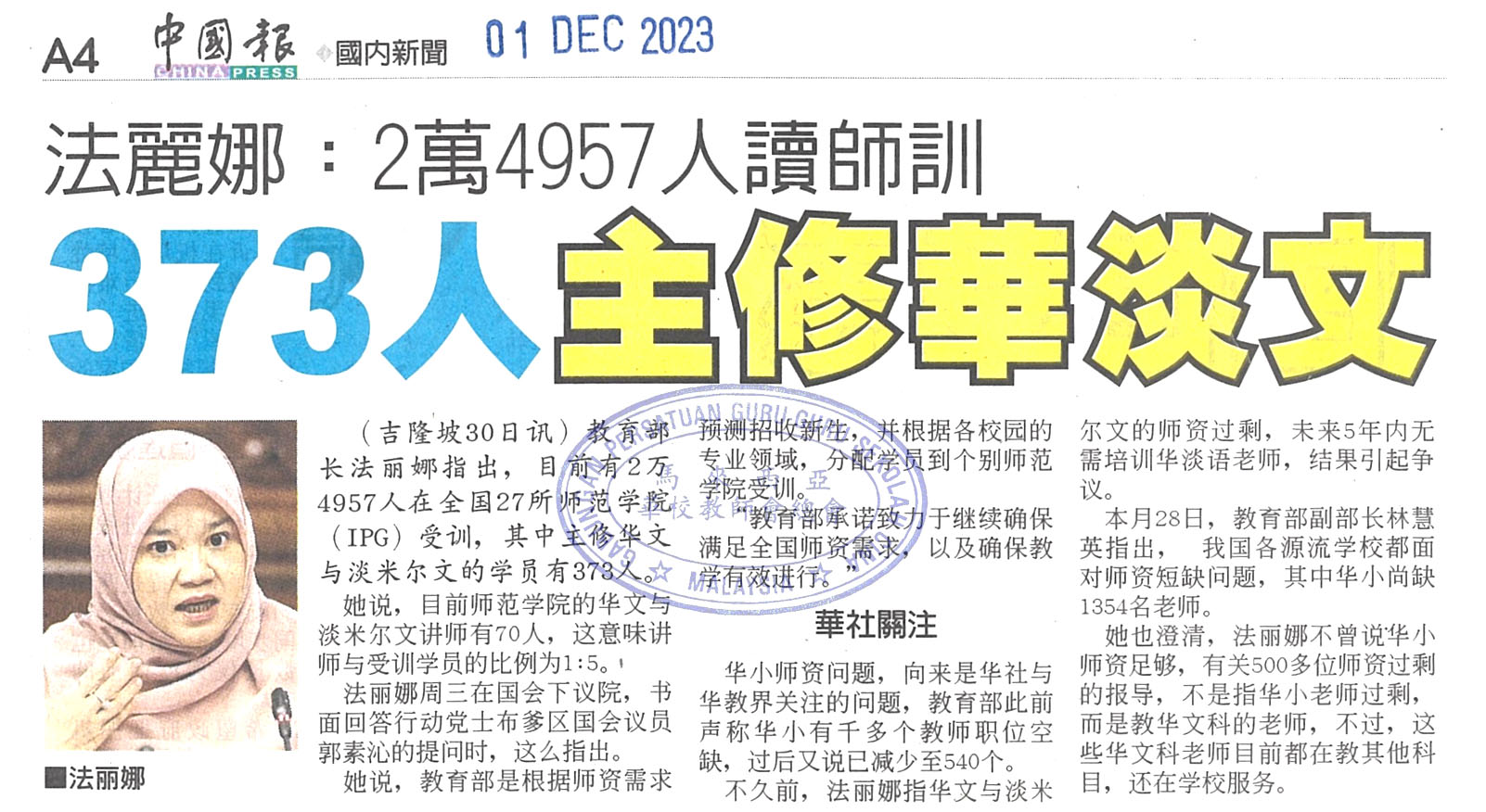 法丽娜:2万4957人读师训 373人主修华淡文