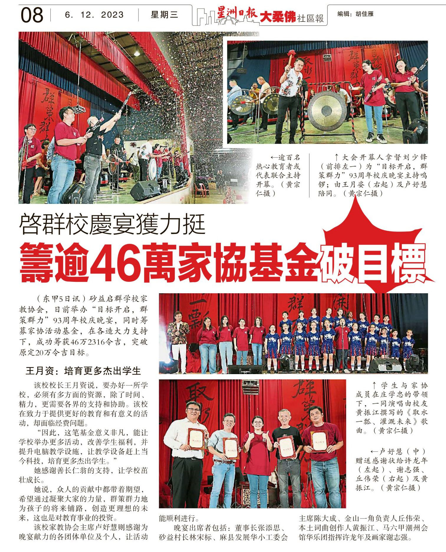 启群校庆宴获力挺 筹逾46万家协基金破目标