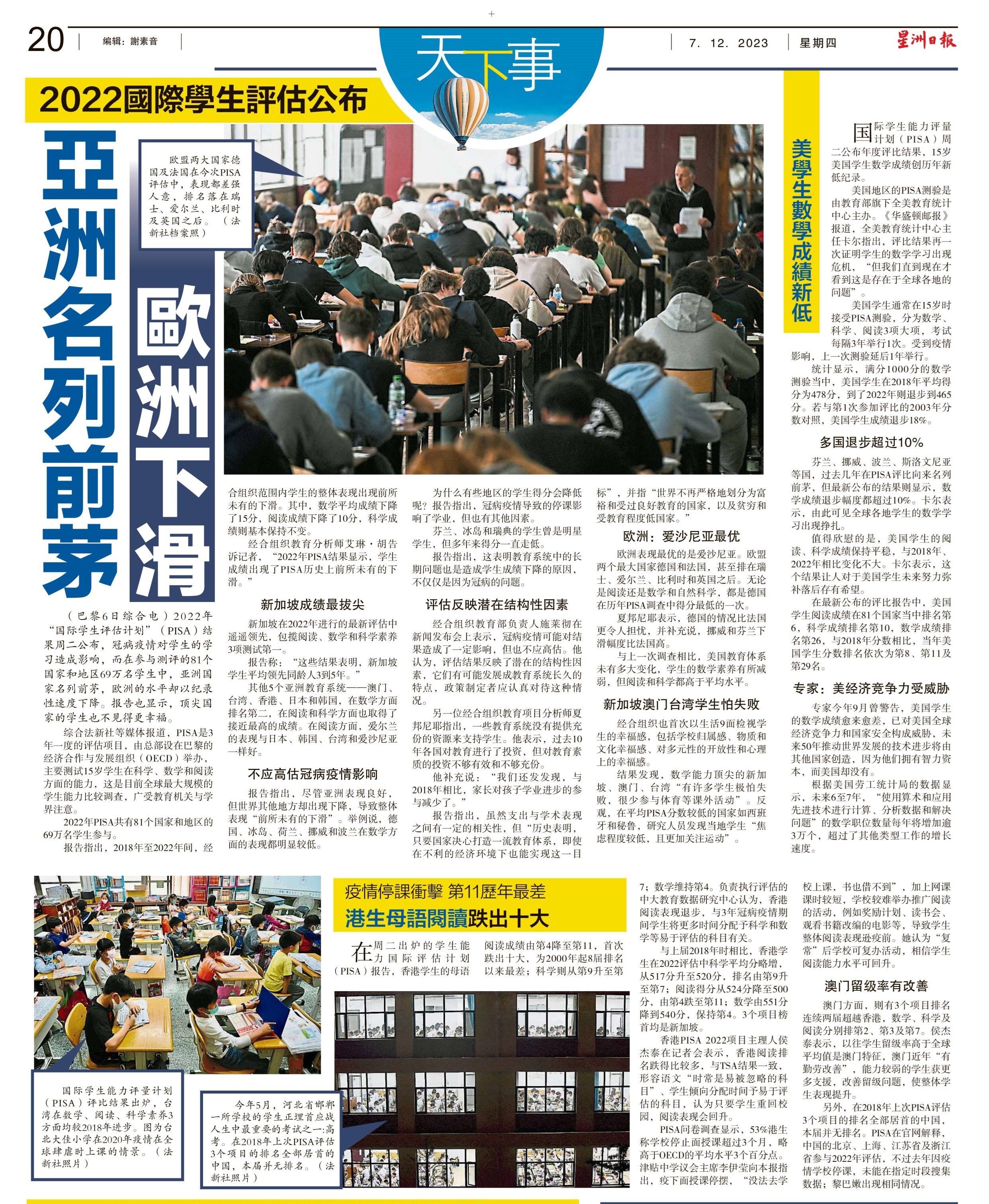 2022国际学生评估公布 亚洲名列前茅 欧洲下滑