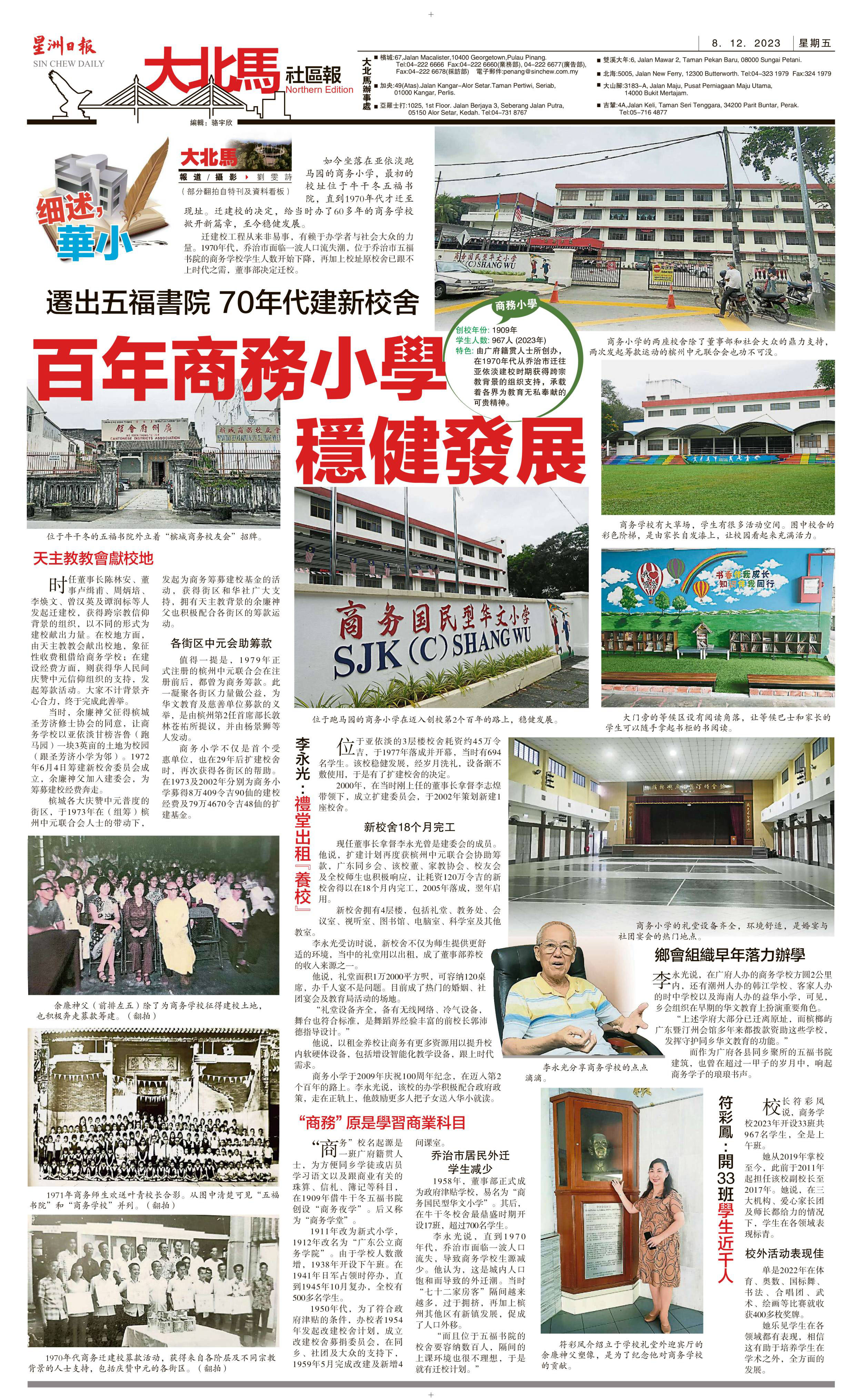 迁出五福书院 70年代建新校舍 百年商务小学稳健发展
