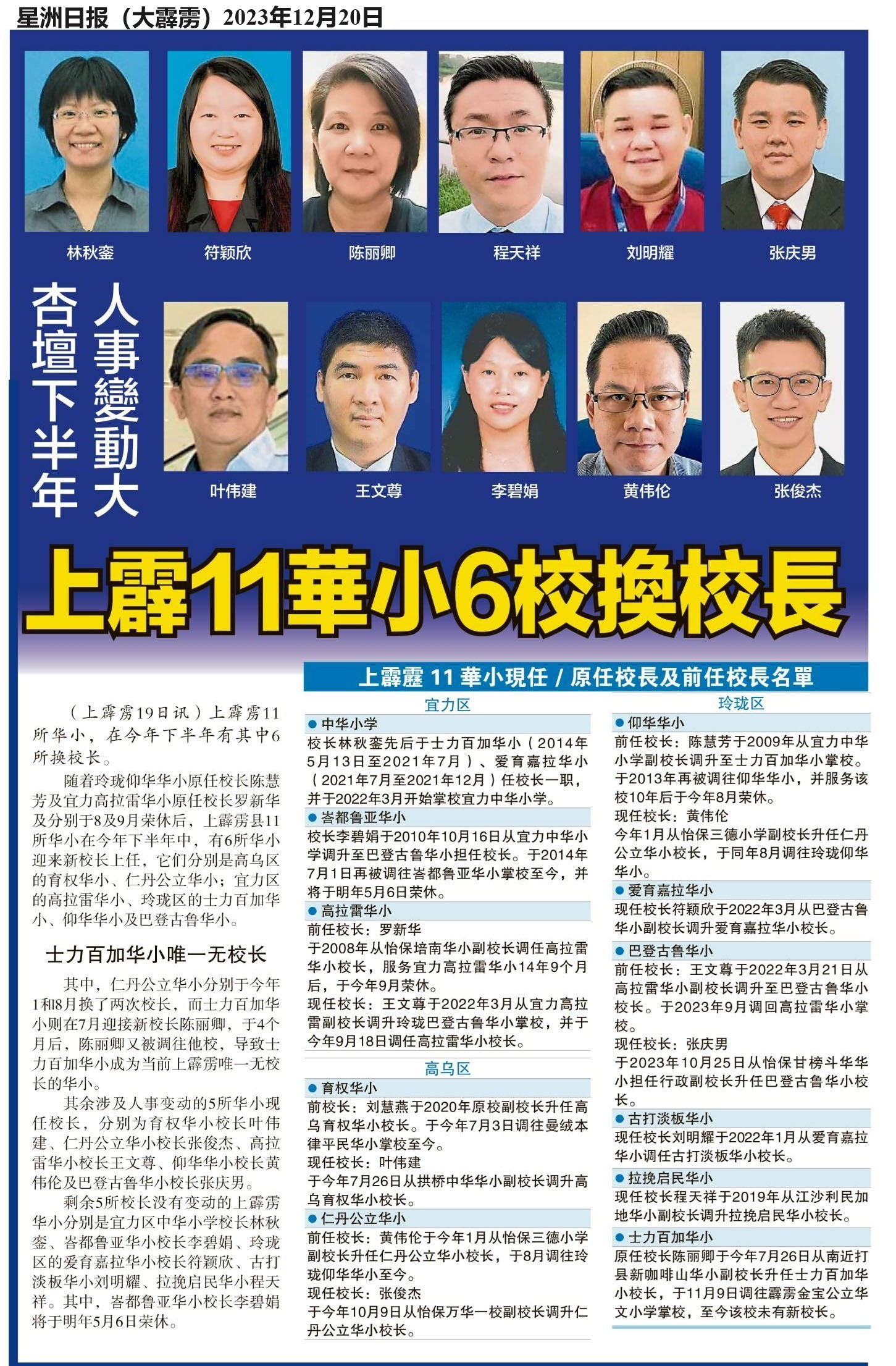 杏坛下半年 人事变动大 上霹雳11华小6校换校长