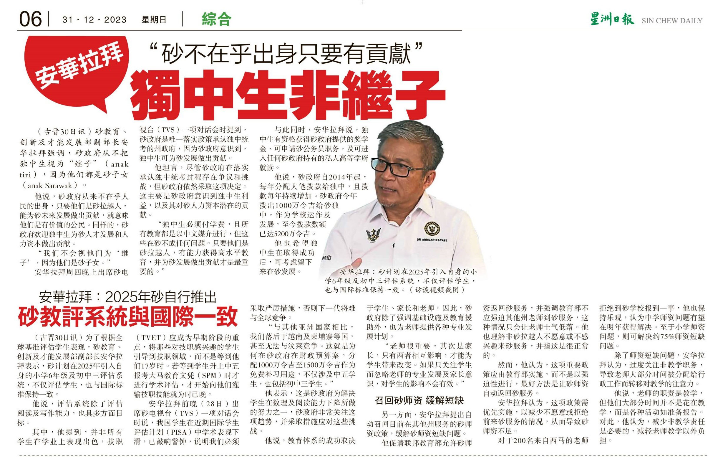 安华拉拜“砂不在乎出身只要有贡献”独中生非继子