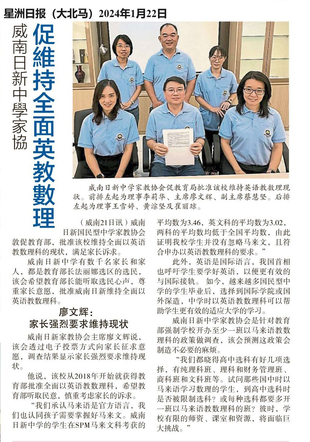 威南日新中学家协 促维持全面英语教数理 WhatsApp 上一篇文章: 黄振江创作 启二727人合唱《启动今天.明日辉煌》满满正能量 上一页 下一篇文章: “新教师不了解教师会” 谢立意:不利华教发展 下一页