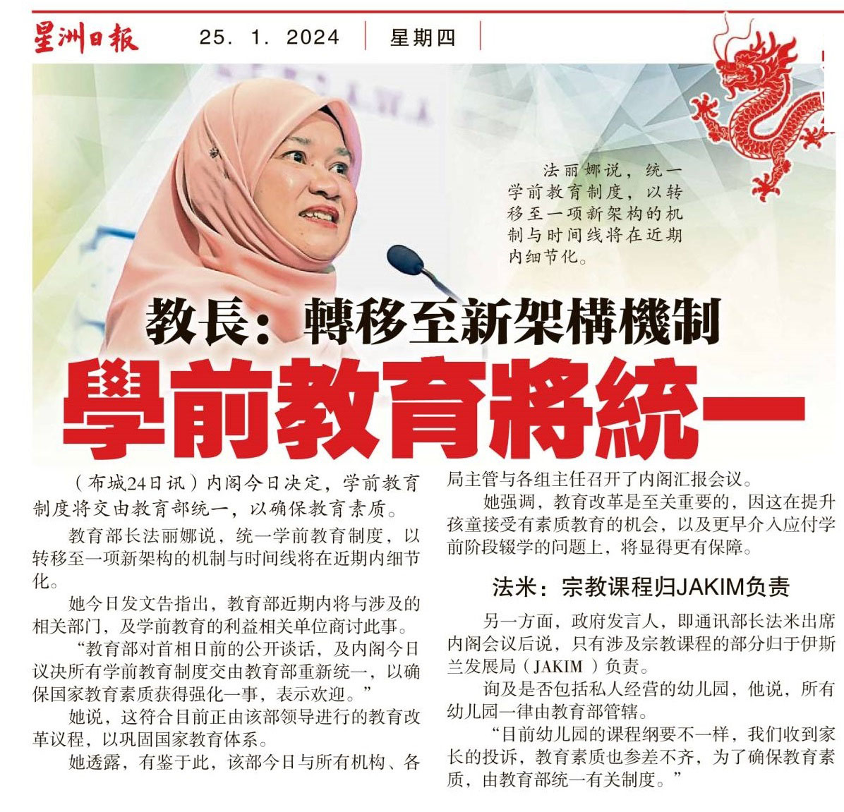 教育部长:转移至新架构机制 学前教育将统一 WhatsApp 上一篇文章: 教育部长:华小受马来家长欢迎 承诺捍卫多源流学校 上一页 下一篇文章: 张盛闻:关注2组织上诉挑战 马华续捍卫华淡小地位 下一页