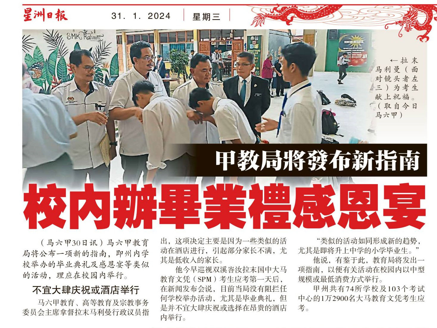 马六甲教育局将发布新指南 校内办毕业礼感恩宴 WhatsApp 上一篇文章: 杨裕川:水灾频仍申请迁校 “利民华小还差一哩路” 上一页 下一篇文章: 万津中华学校提升设备 3月16设宴目标筹百万 下一页