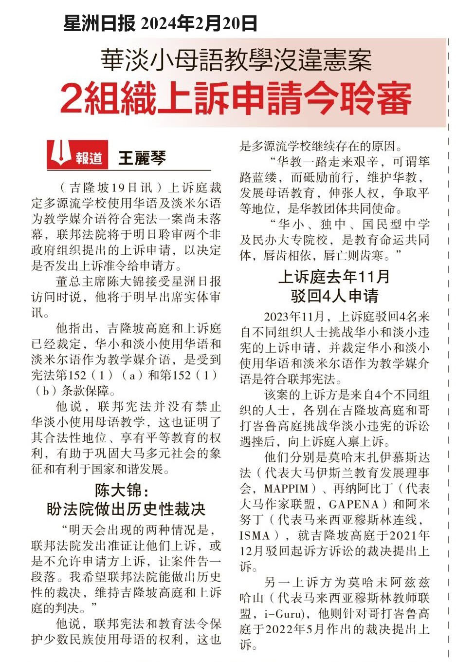 华淡小母语教学没违宪案 2组织上诉申请今聆审