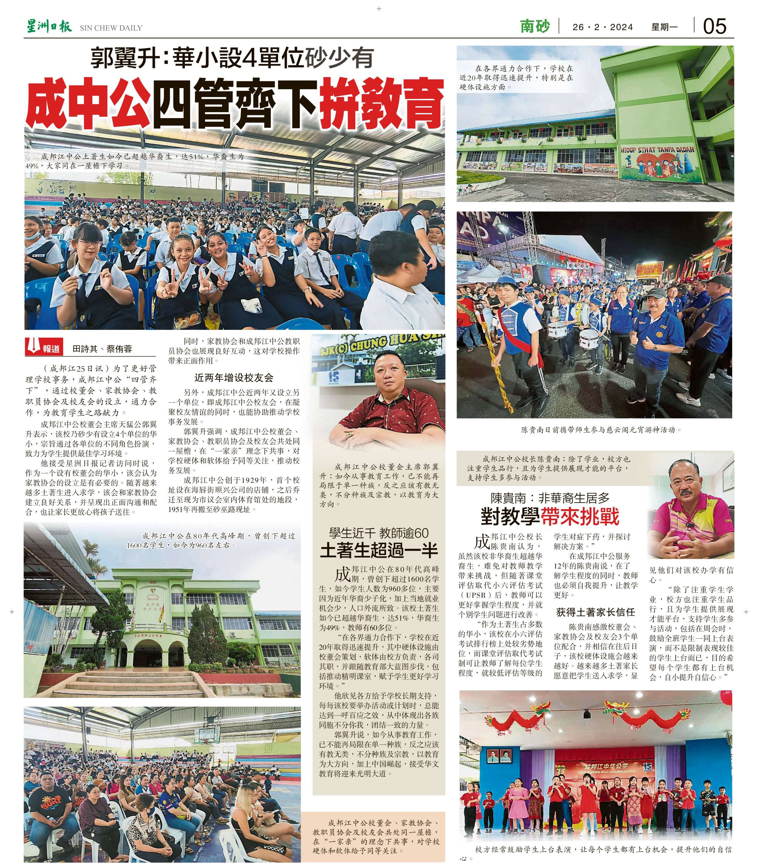 郭翼升:华小设4单位砂少有 成中公四管齐下拼教育 WhatsApp 上一篇文章: 现役教师教学协会:扮演要角 家协应助学校提升设施 上一页 下一篇文章: 80年代新山最大型华小学生大减 国光一校告别双班制 下一页