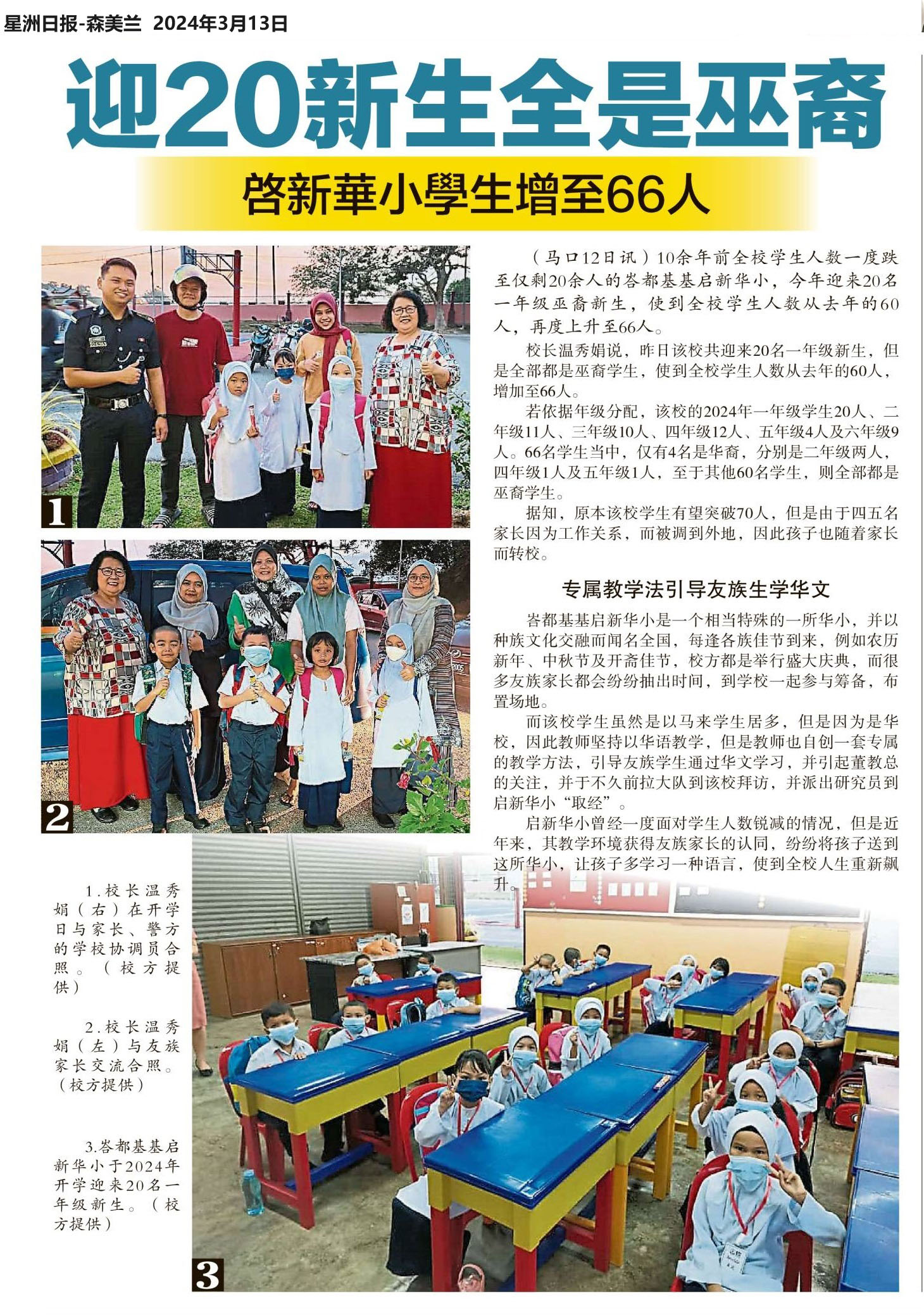 迎20新生全是巫裔  启新华小学生增至66人
